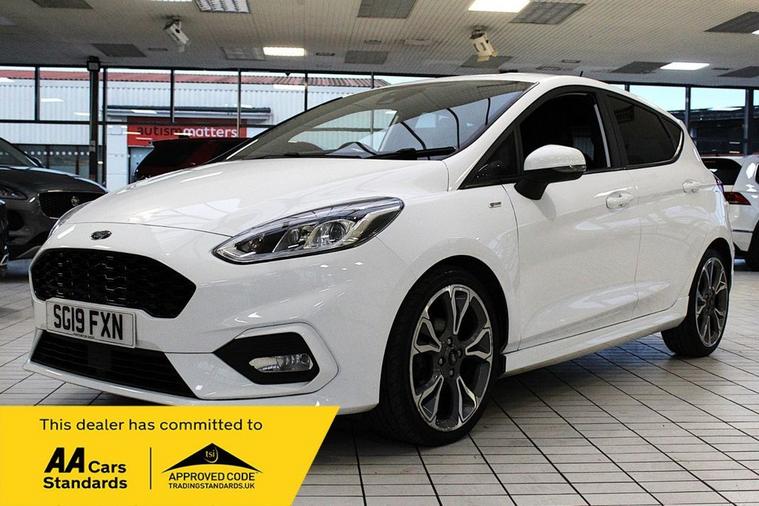 FORD FIESTA 1.0T ECOBOOST GPF ST-LINE 5DRFINISHED IN FROZED WHITE AND COMPLIMENTED WITH TWO TONE CHARCOAL INTERIOR, THIS VEHICLE HAS BEEN VERY WELL CARED FOR AND MAINTAINED WITH DOCUMENTED SERVICE HISTORY PLUS COMPREHENSIVE PRE DELIVERY HEALTH CHECK AND SERVICE COMPLETED PRIOR TO SALE AT 37362 MILES. KEY FEATURES INCLUDE ALLOY WHEELS, AIR CONDITIONING, ELECTRIC WINDOWS, CRUISE CONTROL, MULTIMEDIA SYSTEM, ELECRIC HEATED DOOR MIRRORS, FORD SYNC TOUCHSCREEN, DAB RADIO, SPORT SEATS, KEYLESS GO, HEATED WINDSCREEN, ST STYLING, ALARM PLUS MUCH MORE. COMMITTED TO AA CARS STANDARDS: 3 MONTHS OR 3000 MILES WARRANTY INCLUDED WITH AN OPTION TO UPGRADE: 12 MONTHS AA BREAKDOWN RECOVERY INCLUDED: £75.00 CONTRIBUTION TOWARDS YOUR NEXT SERVICE/MOT AT ANY AA CARS STANDARD APPROVED WORKSHOP: WE STAND BY THE QUALITY OF OUR VEHICLES. WITH THE PURCHASE OF THIS VEHICLE, YOU WILL RECEIVE 3 MONTHS OR 3000 WARRANTY, 12 MONTHS AA BREAKDOWN RECOVERY, GIVING YOU ADDITIONAL PEACE OF MIND AND PROTECTION. ALL OUR CARS COME WITH AT LEAST 6 MONTHS MOT AND PRE SALE HEALTH CHECK AND ROAD TEST. OUR PROFESSIONAL TEAM ENSURES YOUR VEHICLE STAYS IN TOP CONDITION, AND YOU ENJOY A HASSLE-FREE OWNERSHIP EXPERIENCE. 4.7 STARS ON GOOGLE WITH OVER 550 REVIEWS: JOIN OUR COMMUNITY OF SATISFIED CUSTOMERS! OUR DEALERSHIP IS PROUD TO HAVE A 4.7 STAR RATING ON GOOGLE, BACKED BY OVER 550 POSITIVE REVIEWS. WE ARE COMMITTED TO PROVIDING EXCELLENT SERVICE AND HIGH-QUALITY VEHICLES. This Vehicle Comes Equipped with High Specification, Which Includes: -