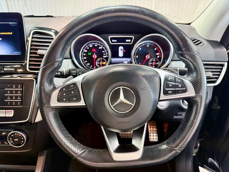 Mercedes-Benz GLE 3.0 GLE350d V6 AMG Line SUV first registered in January 2018 (67 Reg). Finished in Obsidian Black with a Black Leather Interior and 20 inch Alloy Wheels. Spec includes Sliding Panoramic Sunroof | Cruise Control with Speed Limiter | Harman Kardon Sound System | Front Heated Memory Seats | Selectable Drive Modes | Dual Zone Climate Control | Bluetooth Connectivity | Parking Sensors | Reversing Camera | 360 Degree Camera | Night Package | Multifunction Steering Wheel | Powered Tailgate | Satellite Navigation | DAB Radio. Serviced at 10382 Miles | 11092 Miles | 49689 Miles | 51125 Miles | 73987 Miles.