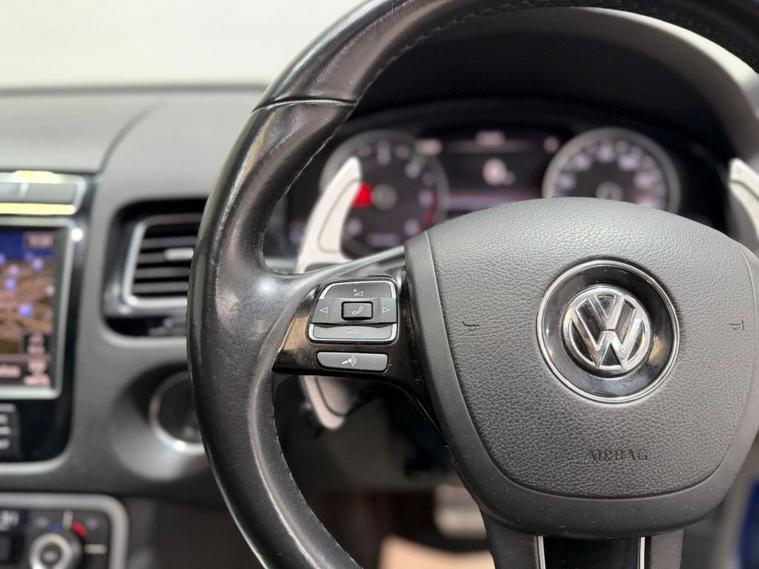 ** NATIONWIDE DELIVERY ** X2 KEYS ** OPENING PANORAMIC SUNROOF ** BOSE SOUND SYSTEM ** DETACHABLE TOWBAR ** HEATED SEATS ** PARKING SENSORS ** BLUETOOTH CONNECTIVITY ** SATELLITE NAVIGATION ** 1 YEAR MOT ADVISORY FREE ** COMPREHENSIVE SERVICE HISTORY ** FRESH SERVICE ** 3 MONTH WARRANTY ** 1 YEAR AA BREAKDOWN COVER ** ULEZ COMPLIANT ** This Volkswagen Touareg 3.0 TDI V6 BlueMotion Tech R-Line SUV combines bold styling with advanced technology, featuring the R-Line body styling kit, 20in Tarragona alloy wheels, panoramic sunroof, and bi-xenon headlights with automatic height adjustment. Safety and convenience are enhanced with automatic post-collision braking, cruise control, keyless entry, electronically heated and foldable mirrors with auto-dimming and puddle lights, and front and rear ultrasonic parking sensors with optical and audible alerts. The automatic electric tailgate and tinted rear windows complete the sophisticated exterior package. Inside, the cabin is designed for comfort and connectivity, offering two-zone electronic climate control with automatic air recirculation, heated front seats, and the premium BOSE sound system for immersive audio. The RNS 850 touchscreen satellite navigation system with integrated voice control, DAB digital radio, Bluetooth telephone preparation, and tyre pressure monitoring system provide seamless technology and convenience. This Touareg delivers a refined, high-spec driving experience, blending luxury, performance, and advanced features in a versatile SUV package.