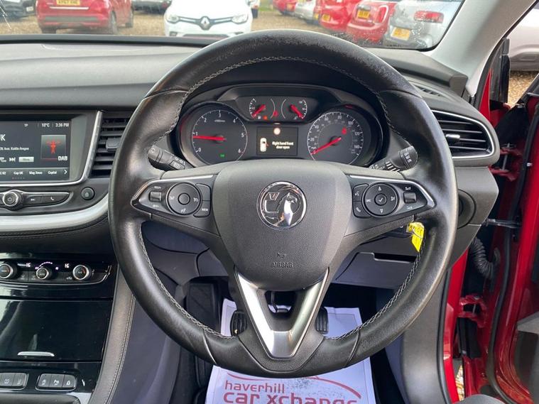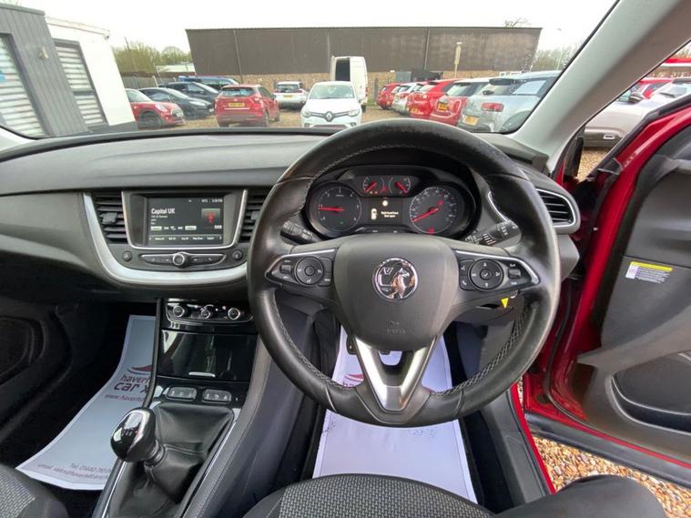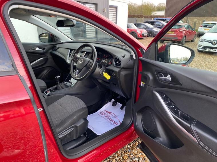ONLY 57, 843 MILES+LONG MOT UNTIL 14.10.2026+TOUCHSCREEN INFOTAINMENT SYSTEM-VAUXHALL ONSTAR+ELECTRONIC CLIMATE CONTROL AIR-CONDITIONING+LANE DEPARTURE WARNING+CRUISE CONTROL+AUTOMATIC HEADLIGHT ACTIVATION-+RAIN-SENSING WINDSCREEN WIPERS+PARKING ASSISTANCE+DARK RUBY RED PAINT+17 INCH ALLOY WHEELS. At Haverhill Car Xchange we would like to offer you our LOW MILEAGE Vauxhall Grandland X SE SUV which has been finished in a metallic Dark Ruby Red paint with Black Benson Cloth upholstery. Specification Includes a Touchscreen Infotainment System, Vauxhall OnStar, 12 Volt Power Socket, Electrotonic Climate Control Air-Conditioning, Shift-Up Indication Light, Cruise Control, Lane Departure Warning, Electrically Operated Front and Rear Windows with Safety Autoreverse and One-Touch Facility, Body Coloured Bumpers/Door Handles/Door Mirrors and Rear Roof Spoiler, Automatic Headlight Activation, Door-to-Door Illumination, Welcome Lighting, LED Daytime Running Lights, LED Tail Lights, High-Level Centre Break Lights, Rain-Sensing Windscreen Wipers, Rear Parking Assistance, Three Spoke Leather Multifunction Steering Wheel, Electric Parking Break, 17 Inch Alloy Wheels, Electrically Assisted Speed Sensitive Power Steering, Hill Start Assist, ABS Breaking System, Airbags, Alarm, Immobiliser, Remote Central Locking and ISOFIX Anchorage Points for Child Seats.