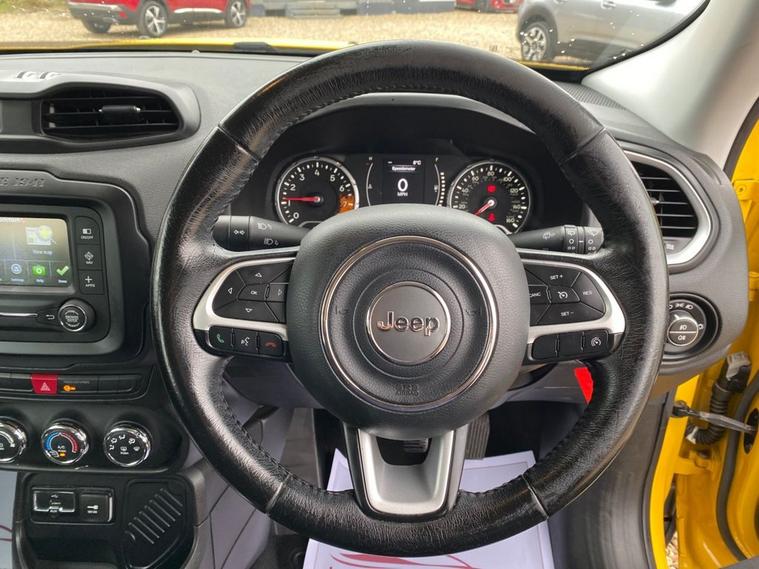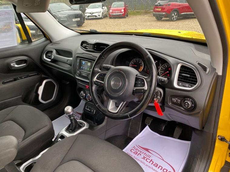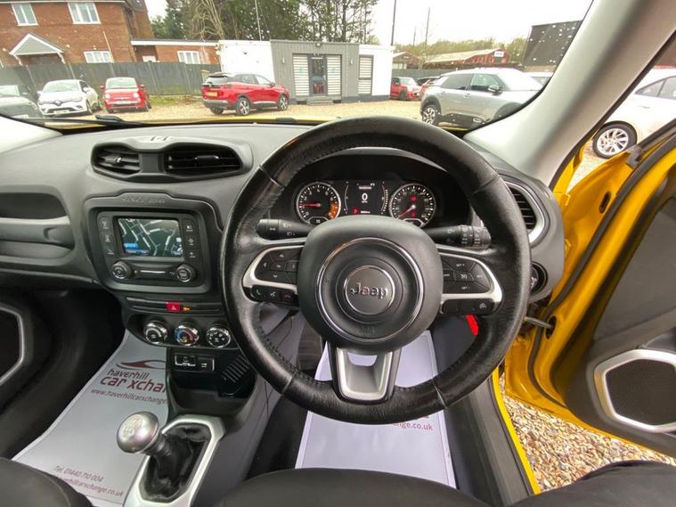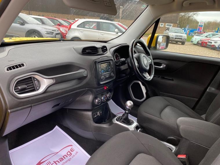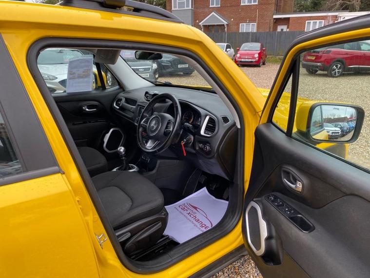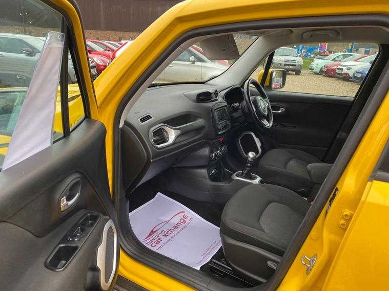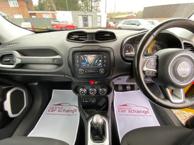 SERVICE HISTORY CONSISTS OF X7 SERVICES+LONG MOT UNTIL 24.11.2026+5 INCH TOUCHSCREEN WHICH FETAURES SATELLITE NAVIGATION SYSTEM-UCONNECT LIVE-UCONNECT DAB RADIO-UCONNECT BLUETOOTH+AIR-CONDITIONING+CRUISE CONTROL+DAYTIME RUNNING LIGHTS+PARKING ASSISTANCE+SOLAR YELLOW PAINT+17 INCH ALLOY WHEELS. At Haverhill Car Xchange we would like to offer you our Jeep Renegade Longitude SUV which has been finished in a Solar Yellow paint, Black Cloth upholstery-Jeep Logo with Silver Bezel Accents. Specification Includes a 5 Inch Touchscreen which features Satellite Navigation System, DAB Radio, Uconnect Bluetooth, USB Connectivity, Aux-in, 12 Volt Power Socket, Air-Conditioning, Cruise Control, EcoDrive-Drive Monitoring System, Power Windows-Driver and Passenger Express Up/Down, Body Coloured Bumpers/Door Handles and Door Mirrors with Integrated Side Indicators-Heated and Electric, Daytime Running Lights Front Fog Lights, Parking Assistance, Multifunction Steering Wheel, Electric Parking Break, 17 Inch Alloy Wheels, Electric Power Steering, Hill Start Assist, ABS Breaking System, Airbags, Alarm, Immobiliser, Remote Central Locking and ISOFIX Anchorage Points for Child Seats.