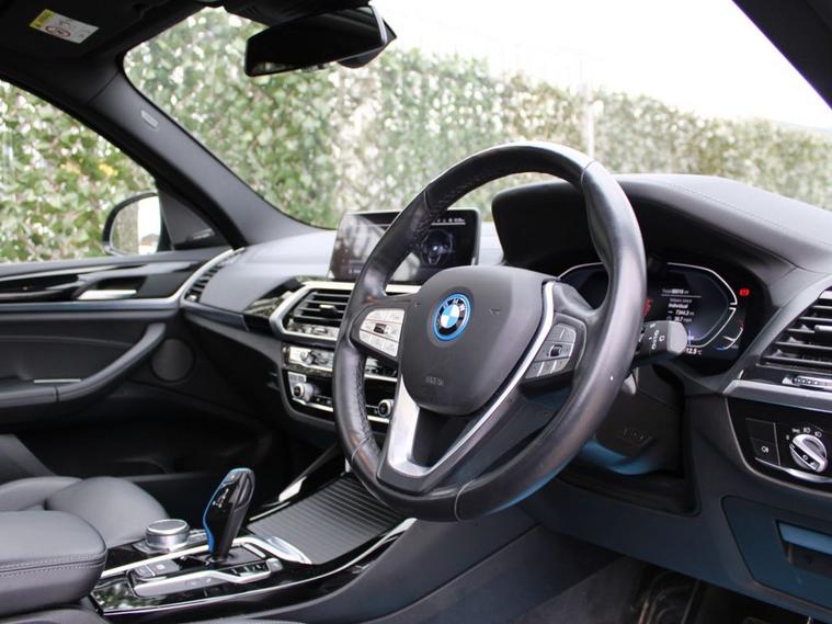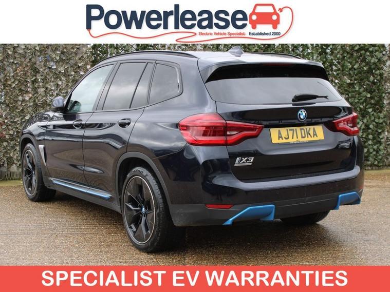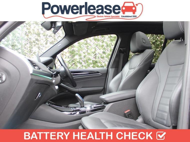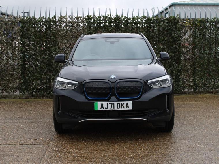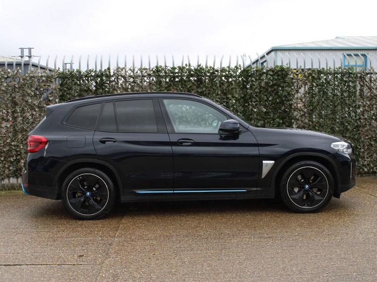 **95.7% BATTERY HEALTH** This 2022 BMW iX3 Premier Edition Pro is a superb example, having had only one owner since new. As an electric vehicle, it offers a smooth and quiet driving experience, powered by an 80 kWh battery that provides a maximum range of 279 miles when new. Charging at home with a 7kW charger will take approximately 11 hours and 20 minutes for a full charge, while rapid public charging can replenish the battery from empty to 80% in as little as 32 minutes. This Premier Edition Pro model also boasts a generous boot space, making it practical for everyday use and longer journeys. The performance of this BMW iX3 is particularly noteworthy, with an impressive acceleration of 0 to 60 miles per hour in just 6.8 seconds, demonstrating its responsive electric power. The 279 mile range highlights its capability for both daily commuting and more extensive travel, setting it apart from many other electric vehicles. This combination of single ownership, excellent range, rapid charging capabilities, ample storage, and brisk acceleration makes this 2022 BMW iX3 Premier Edition Pro a compelling choice for those seeking a premium electric SUV.