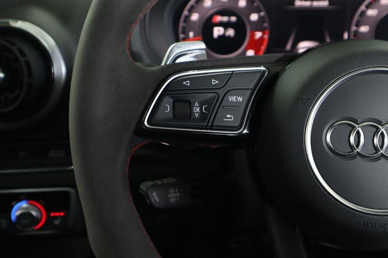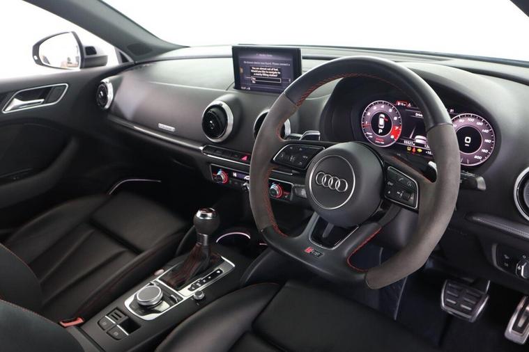 Experience exhilarating performance with this 2019 Audi RS3 TFSI, a true testament to German engineering. This four wheel drive model boasts a powerful 2.5 litre petrol engine, meeting Euro 6 emission standards for efficient driving. Inside, you'll find comfort and convenience with heated front seats and electric windows for the front passengers. The split folding rear seat bench, offering 60-40 or full folding options, provides versatility for carrying passengers or larger items. Stay connected and entertained with Audi Connect Infotainment Services, including online media streaming, with a 3 month subscription included from new. This Audi RS3 stands out with its impressive acceleration, achieving 0-62mph in a mere 4.1 seconds, showcasing its dynamic capabilities. Beyond its speed, this vehicle offers a large boot space, ensuring practicality for all your needs. These highlights demonstrate how this RS3 offers a superior driving experience compared to other vehicles in its class, combining thrilling performance with everyday usability and advanced technology.