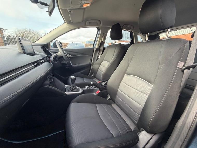 This 2018 Mazda CX-3 1.5 D 105 SE 2WD in blue has covered 94, 588 warranted miles and has had 4 previous owners. First registered on 13/09/2018, it comes complete with 2 keys and a present logbook, offering reassurance and transparency for its next owner. Powered by the efficient 1.5 diesel engine with manual transmission, this CX-3 delivers excellent fuel economy while producing just 105 g/km of CO2, making it an economical and practical choice for both city driving and motorway journeys. Smooth, responsive, and easy to drive, its a fantastic all-round compact SUV. The SE specification includes 16-inch alloy wheels, satellite navigation with European mapping, air conditioning, cruise control, and a 7-inch colour touchscreen display with DAB radio and Bluetooth connectivity giving you comfort, convenience, and modern technology at your fingertips. Inside, the cabin is well laid out and spacious, featuring 60/40 split-folding rear seats and a flexible luggage compartment for added practicality. Safety is well covered with Dynamic Stability Control, hill hold assist, ISOFIX child seat anchor points, and remote central locking. This is a very affordable SUV presented in amazing condition, offering style, efficiency, and practicality in one smart package.