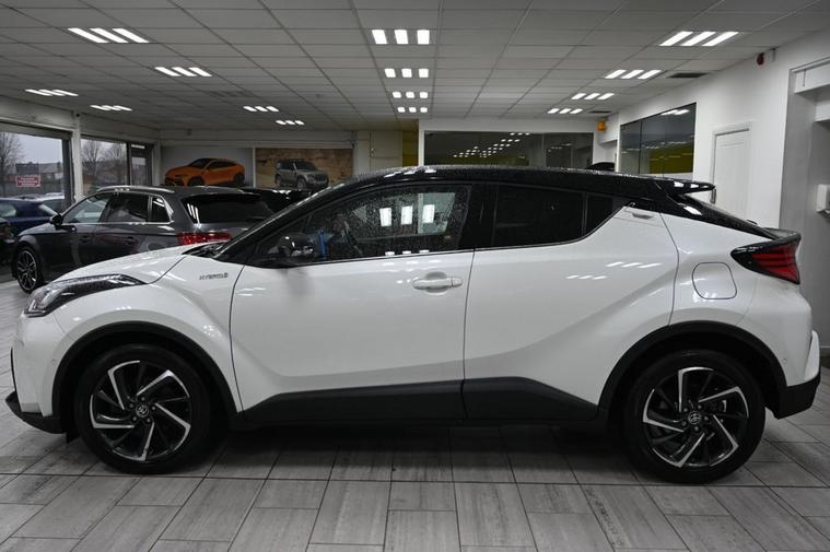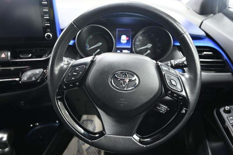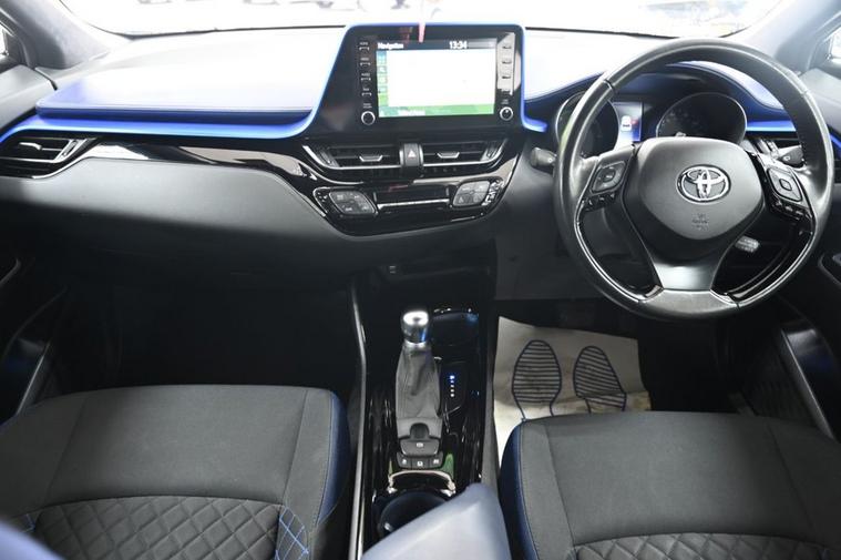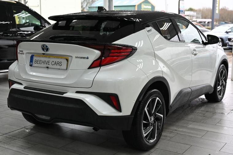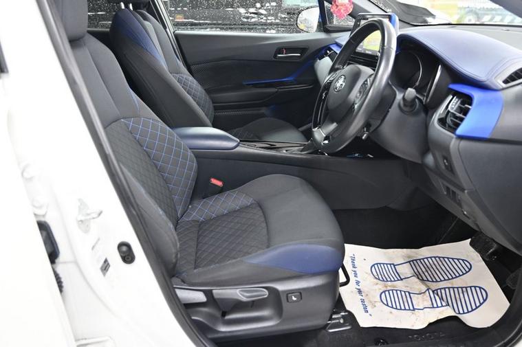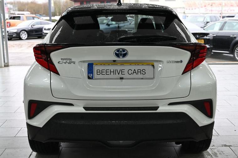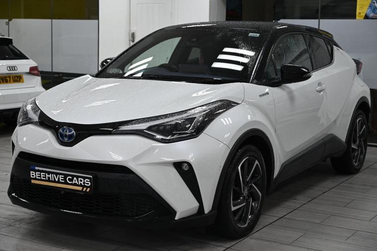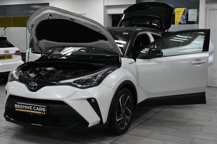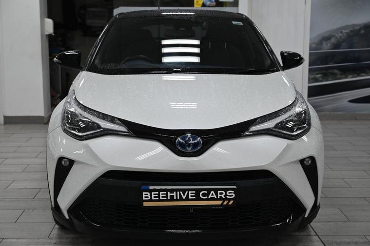 DRIVE AWAY TODAY OR HOME DELIVERY TO YOUR DOORSTEP FINANCE & PART EXCHANGE ARRANGED ONLINE **7 DAY MONEY BACK GUARANTEE*** Nice car and drive Toyota C-hr 1.8 vvt-h dynamic suv hybrid cvt in metallic white with full toyota service history still under manufacturers warranty touchscreen sound system sat nav dab radio bluetooth media usb reverse camera black cloth seats with blue stitching and leather armrest heated seats electric folding door mirrors front and rear parking aid sensors xenon lights eco ev power driving modes push button start stop alloys privacy