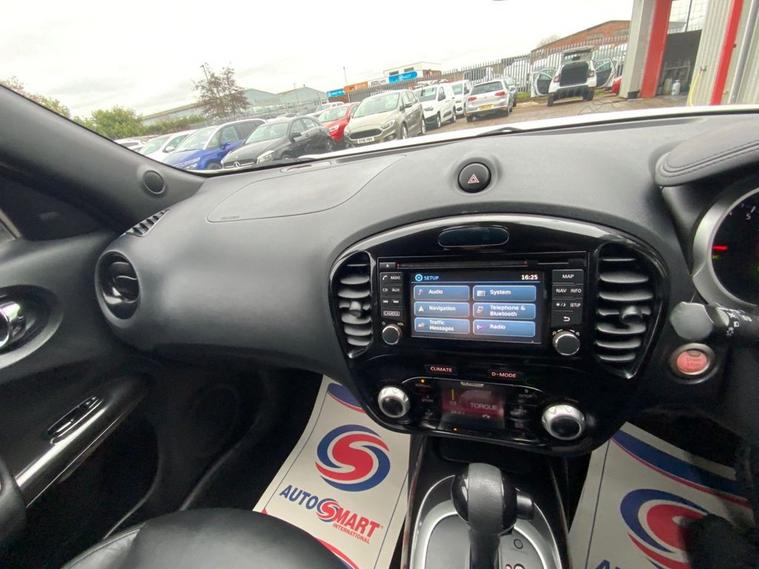 The Nissan Juke Tekna, a 2016 model, boasts a 1.6L Petrol Engine, meeting the stringent Euro 6 emission standards. This trim level is equipped with a range of impressive features, including a Safety Pack that includes Blind Spot Assistance and a 360-degree camera system for enhanced parking confidence. The vehicle also comes with a Colour Reversing Camera, providing a clear view of the surroundings when reversing. Additionally, the Tekna trim offers heated front seats and an Automatic Climate Control system with a pollen filter, ensuring a comfortable driving experience. Bluetooth integration is also standard, allowing seamless connectivity to your phone. The vehicles low mileage of 28, 502 miles for its age is a testament to its well-maintained condition. This 2016 Nissan Juke Tekna is a great option for those seeking a reliable and feature-packed vehicle. Its low insurance group rating makes it an attractive choice for those looking to keep costs down. The vehicles low mileage is a significant advantage, indicating that it has been well cared for and is likely to require less maintenance in the future. With its impressive array of standard features and low running costs, this Juke Tekna is a great value proposition in the used car market. Just arrived, what a lovely NISSAN JUKE 1.6 Tekna SUV 5dr Petrol XTRON Euro 6 (117 ps) drives superb excellent condition in&out well looked after, 2keys, Automatic smooth drive, Great Spec , RESERVE THIS CAR FOR A FULLY REFUNDABLE £99. THE DEPOSIT WILL BE DEDUCTED FROM THE FINAL PRICE IF YOU GO AHEAD, OR REFUNDED IN FULL IF YOU DONT.HPI CLEAR. FINANCE AVAILABLE - LOW CREDIT SCORE? WE MAY STILL BE ABLE TO HELP. EXCELLENT EXTENDED AA WARRANTY OPTION AND 12 MONTH AA BREAKDOWN COVER INCLUDED. ALL CARS READY TO DRIVE AWAY. 5 DAY DRIVE AWAY INSURANCE AVAILABLE. ACT FAST - THIS WONT HANG AROUND LONG! dealer's website