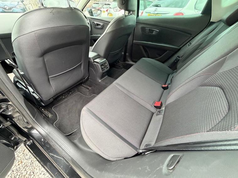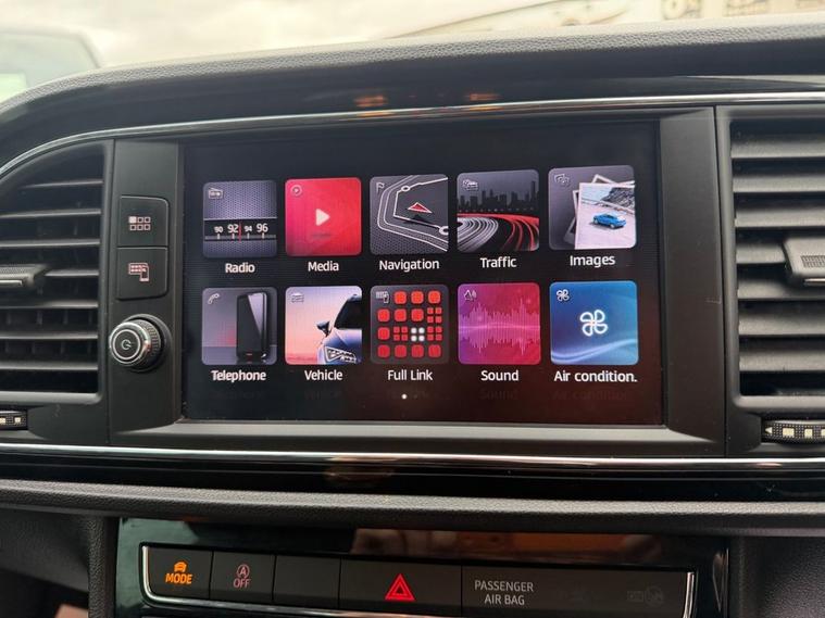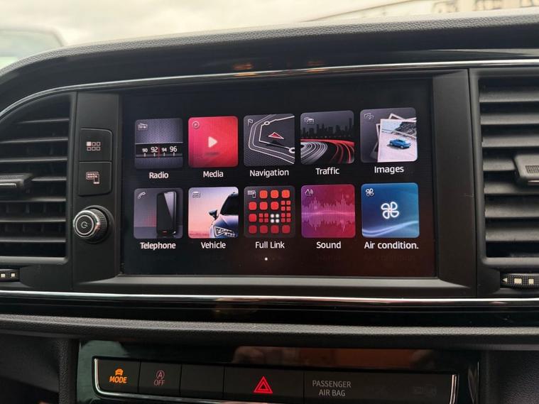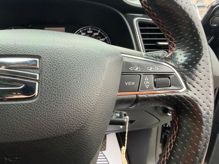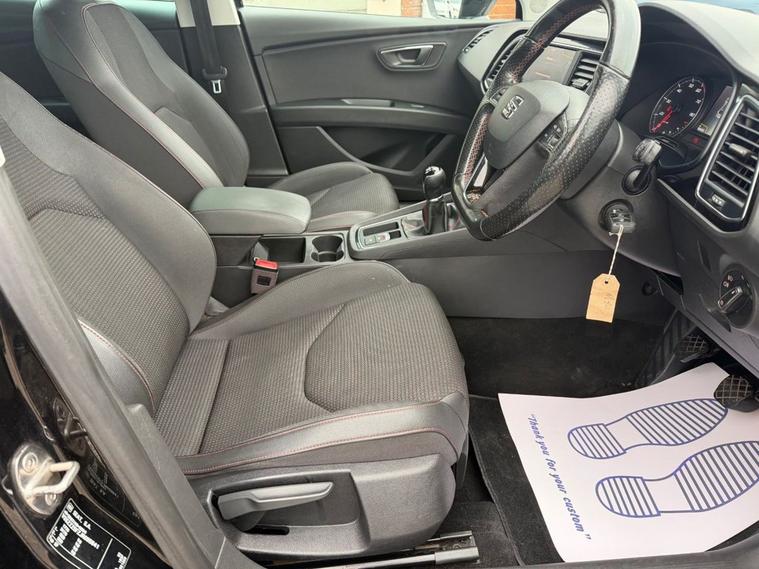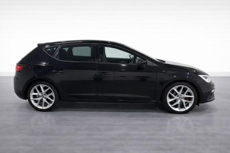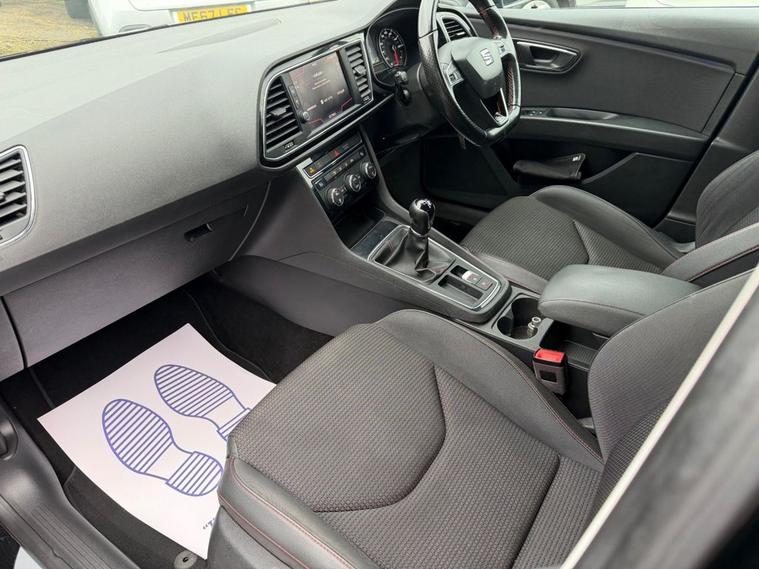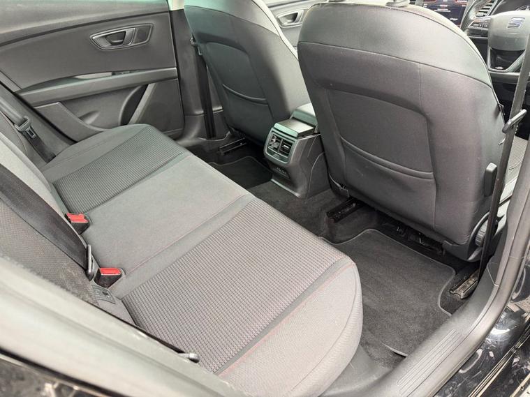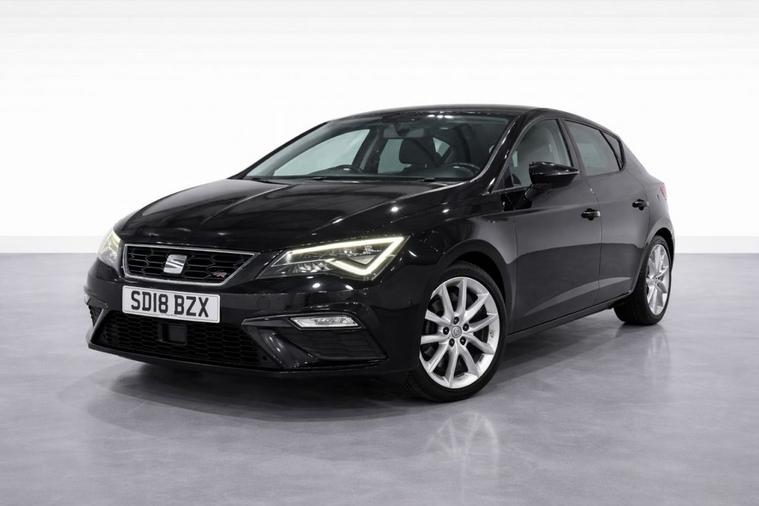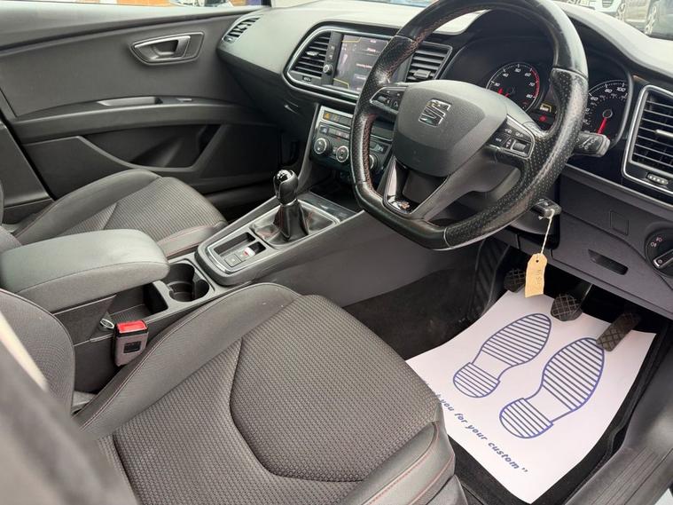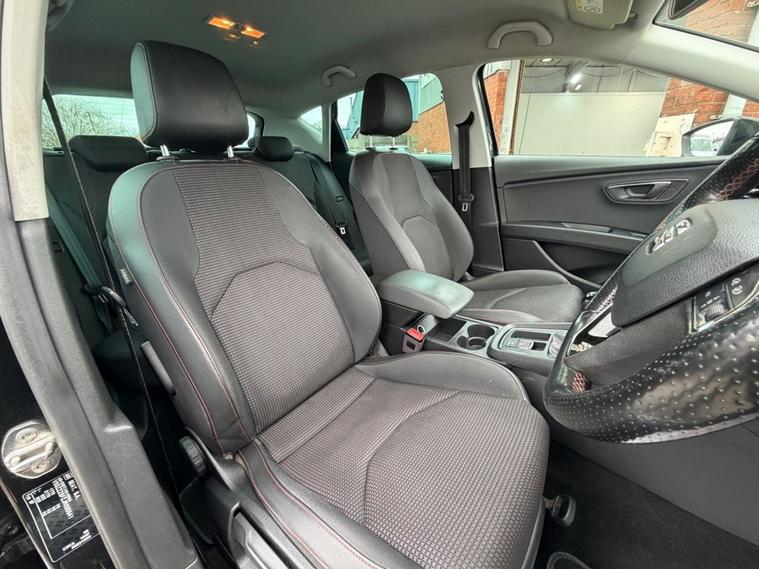 This 2018 SEAT Leon 1.4 TSI 125 FR Technology 5-Door in black has covered 90, 600 warranted miles and has had 2 previous owners. It comes with a present logbook and documented service history, offering reassurance for its next owner. The service history is recorded at: 18, 240 miles 36, 115 miles 54, 982 miles 72, 430 miles 88, 765 miles Powered by the responsive 1.4 TSI petrol engine producing 125 bhp and paired with a manual gearbox, it delivers a smooth yet sporty drive while maintaining sensible running costs, with CO2 emissions of 120 g/km. The FR Technology trim adds a dynamic edge with lowered sports suspension and sharp styling throughout. Specification highlights include the Navigation System, Dual Zone Climate Control, Full LED Headlights, Rear Parking Sensors, Cruise Control, and SEAT Full Link smartphone integration with Apple CarPlay and Android Auto. The cabin is enhanced with front sports seats, a flat-bottomed perforated leather FR steering wheel with red stitching, multi-coloured ambient lighting, and aluminium FR door sill trims. With its five-door practicality, 60/40 split-folding rear seats, and sporty FR design, this Leon is ideal for commuting, family life, or anyone wanting performance-inspired styling with everyday usability.