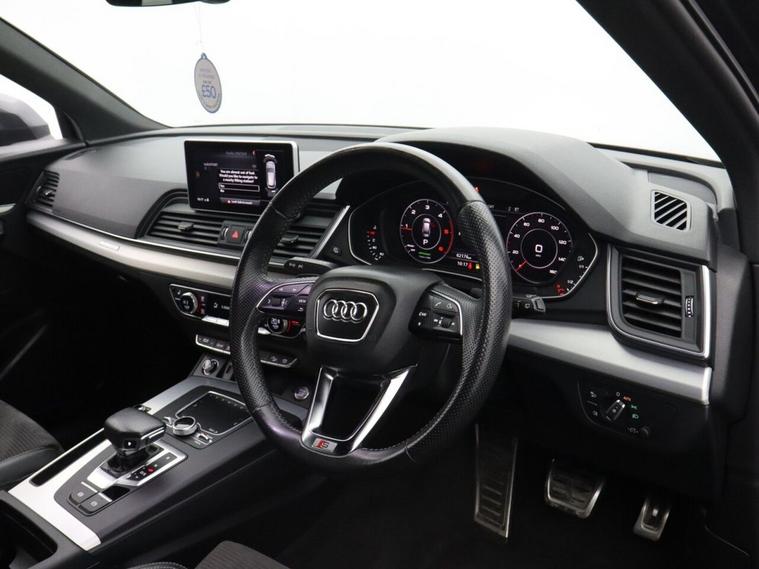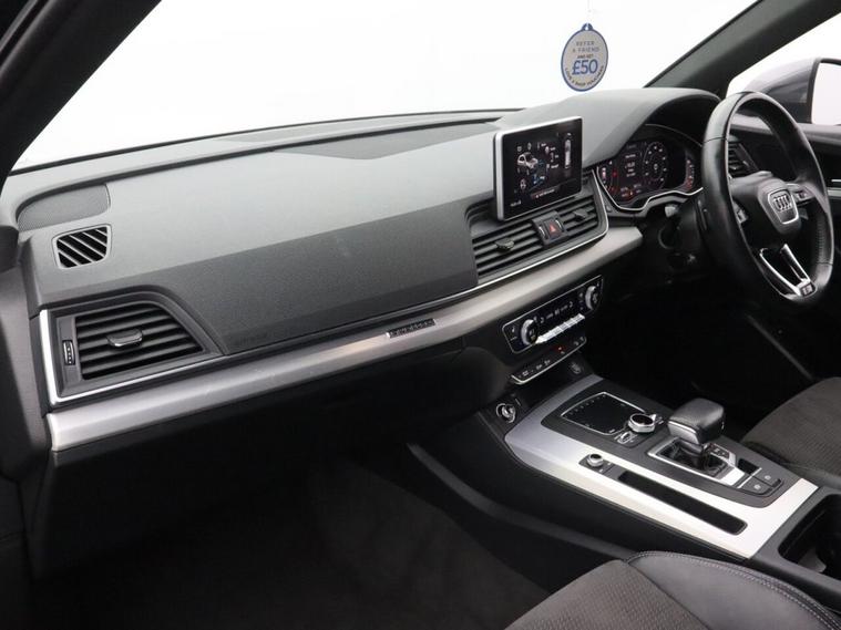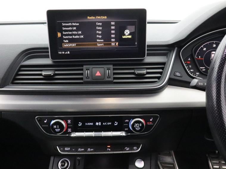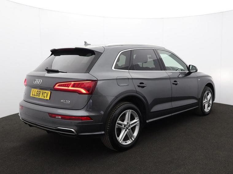 Oakwood Motor Company are delighted to offer this Audi Q5 2.0 TDI 40 S line SUV, finished in the striking Daytona Grey, a premium shade that enhances its bold and sporty design. Combining luxury, technology, and performance, this SUV is built to impress. Inside, the black leather-Alcantara sports seats with Rock Grey stitching provide exceptional comfort, complemented by a perforated leather multi-function steering wheel with S badging and gear-shift paddles. The MMI navigation system preparation, Audi Smartphone Interface, Bluetooth, DAB radio, and Audi Sound System ensure seamless connectivity and entertainment. The deluxe 3-zone climate control and LED interior lighting pack enhance the premium cabin feel. The exterior features 19-inch 5-twin-spoke star design diamond-cut alloy wheels, S line body styling, privacy glass with acoustic glazing, aluminium roof rails, and a power-operated tailgate for added convenience. LED headlights with high-beam assist and dynamic rear indicators offer excellent visibility, while the high-gloss package adds to the sleek aesthetic. Equipped with dynamic suspension, Audi Drive Select, and cruise control with a speed limiter, this Q5 delivers a smooth and responsive drive. Safety features include Audi Pre-Sense City, Audi Parking System Plus, hill descent control, hill hold assist, and ISOFIX child seat mounting. The technology package further enhances its cutting-edge capabilities. Offering a perfect blend of refinement, performance, and practicality, this Audi Q5 S line is an outstanding choice. Call our team today to arrange your viewing or test drive!