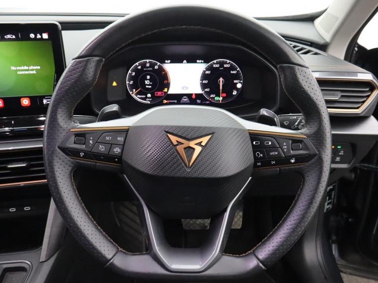 This 2022 CUPRA Formentor TSI V1 boasts a clean vehicle history and has had only one owner since new. It features a 1.5 litre Euro 6 petrol engine and comes with an MOT valid until September 2026, offering peace of mind for the road ahead. Inside, youll find a comfortable cabin equipped with Three Zone Climate Control, allowing everyone to set their preferred temperature, and a heated leather multi-function steering wheel with gear shift paddles for an enhanced driving experience. The Formentor TSI V1 is designed for modern driving, accelerating from 0 to 60mph in just 8.9 seconds, demonstrating its responsive performance. Its LED headlights provide excellent visibility, while rear parking sensors make manoeuvring easier. The Predictive Adaptive Cruise Control with Speed Limiter helps maintain a set speed and distance from the vehicle in front, making longer journeys more relaxed. These features collectively highlight how this CUPRA Formentor offers a refined and capable driving experience compared to other vehicles in its class.