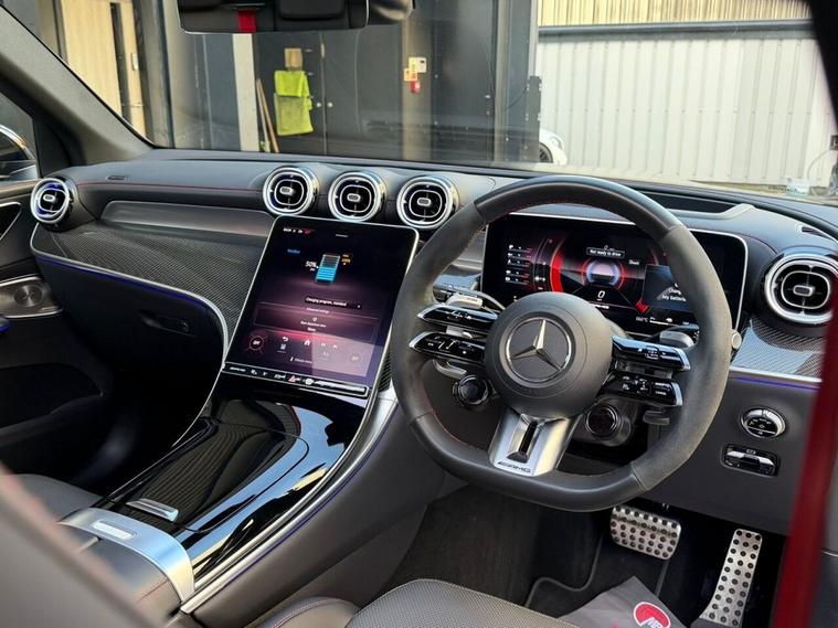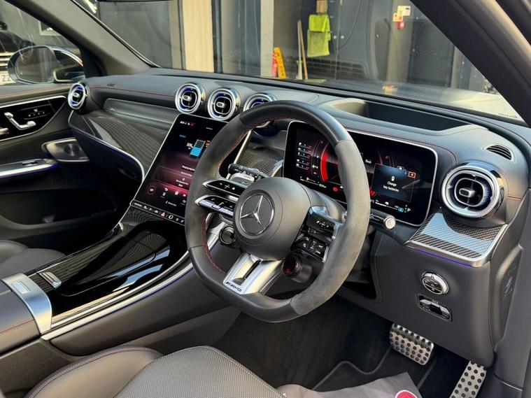 This 2024 Mercedes Benz GLC63 AMG S E Performance Night Edition in Graphite Grey Magno boasts exceptionally low mileage for its age, having covered just 5769 miles. This impressive example features a powerful 2.0 litre petrol plug-in hybrid engine paired with Four Wheel Drive, ensuring dynamic performance and efficiency. As a Euro 6 emission class vehicle, it meets stringent environmental standards. Its provenance is further assured with a full dealership service history and a clear vehicle history check, offering peace of mind to its next owner. Experience the thrill of rapid acceleration, achieving 0-60mph in a remarkable 3.5 seconds, a testament to its AMG S E Performance designation. This superior performance is complemented by a host of premium features designed to enhance your driving experience. These include a Head Up Display for convenient information access, heated front seats for comfort in all conditions, and an AMG Performance Seat Package High End for enhanced support. The Memory Package ensures your preferred seating positions are easily recalled, while Active Parking Assist with PARKTRONIC simplifies manoeuvring in tight spaces, highlighting how this vehicle offers a more refined and capable drive compared to others.