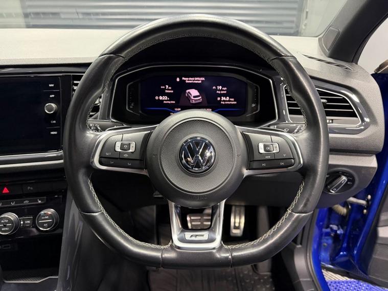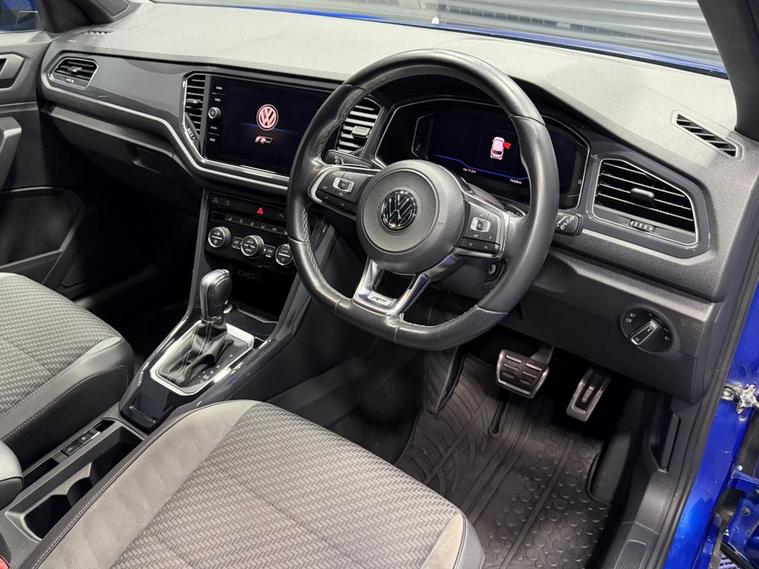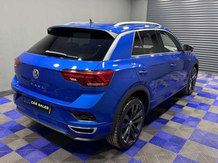 AJC Car Sales presents this stunning VOLKSWAGEN T-ROC 2.0 TDI R-Line SUV 5dr Diesel DSG Euro 6 (s/s) (150 ps) finished off in the Beautiful Ravenna Blue Metallic with 19 Alloy Wheels, Two Keys and a Great Service Record. The 2019 Volkswagen T Roc 2.0 TDI R Line combines sporty styling, premium comfort, and impressive diesel efficiency in a compact SUV package. Powered by a responsive 2.0-litre TDI engine producing 150 PS, paired with a smooth DSG automatic gearbox, it delivers strong performance while maintaining excellent fuel economy. The Euro 6 compliant engine with start/stop technology ensures lower emissions and efficient everyday driving. As part of Volkswagens R-Line trim, this T-Roc stands out with its sporty body styling, distinctive R-Line interior detailing, and premium finish throughout. The raised SUV driving position offers great road visibility, while the refined suspension and DSG transmission provide a comfortable yet engaging drive whether in the city or on longer motorway journeys. Inside, the cabin is modern and well-equipped, featuring digital displays, intuitive infotainment, Bluetooth connectivity, climate control, and advanced driver assistance systems designed to enhance safety and convenience. The spacious interior and practical boot space make it ideal for both daily commuting and family trips. With its blend of sporty design, strong diesel performance, and everyday practicality, the Volkswagen T-Roc R-Line is a fantastic choice for drivers looking for a stylish and efficient SUV.