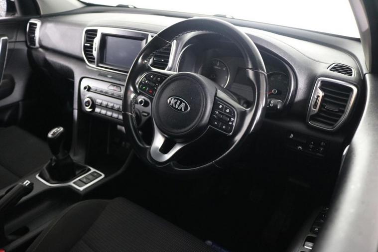 This well maintained Kia Sportage 2 finished in Artic White looks fantastic complemented by 17 inch Alloy Wheels and Rear Privacy Glass. Fin your way with integrated SATELLITE NAViGATION with 7 inch TOUCHSCREEN Display. Keep connected to your Phones APPS through APPLE CARPLAY and ANDROID AUTO. Park in ease with REAR PARKING SENSORS and REVERSE CAMERA. Keep connected with BLUETOOTH phone system. Listen to your music through DAB Digital Radio. Comfortable to drive with Dual-Zone CLIMATE CONTROLLED AIR CONDITIONING and CRUISE CONTROL with Speed Limiting Function. Well equipped with Power-Fold Door Mirrors, Auto Headlights and Rain-Activated Wipers. Also fitted with ISOFIX seats, Multifunctional Steering Wheel, Lane Keep Assist, Immobiliser and Remote Door Locking with 2 x keys. Buy in confidence with SERVICE HISTORY with 8 x Documented Services.