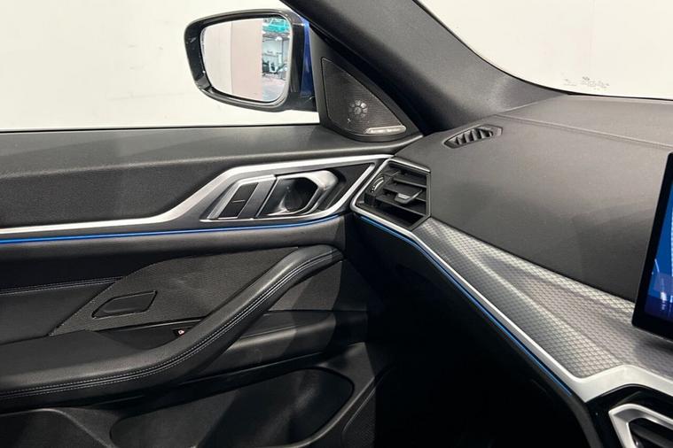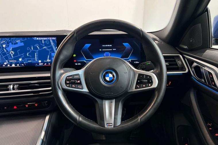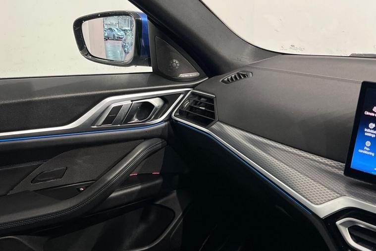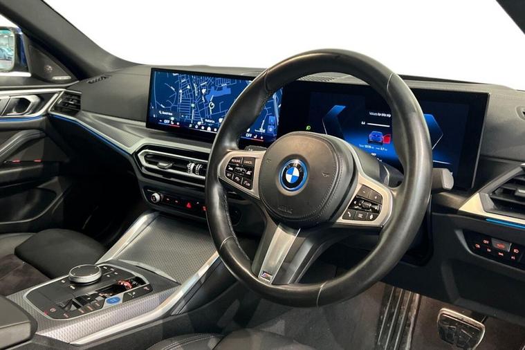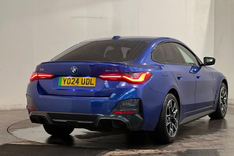 The BMW i4 35 M Sport is a 2024 model, boasting a sleek and sporty design. This electric vehicle is powered by a 70 kWh battery, offering a maximum range of 288 miles on a single charge. The vehicle has a clear vehicle history, with only one previous owner and a low mileage of 13, 177 miles for its age. The i4 35 M Sport is equipped with a range of impressive features, including the Tech Pack, which includes a Head Up Display, Premium Branded Sound System, and Wireless Phone Charging. Additionally, it comes with Parking Assistant, Reversing Assist Camera, LED Headlights, and a Harman Kardon Surround Audio Sound System. The BMW i4 35 M Sport is a standout model in its class, with impressive acceleration that can take you from 0-60mph in just 6.0 seconds. The vehicles large boot space is another significant advantage, making it an ideal choice for those who need a spacious and practical electric car. When it comes to charging, the i4 35 M Sport can be fully charged at home in 10 hours and 15 minutes using a 7kW charger, while public charging can take as little as 35 minutes to reach 80% capacity. With its impressive performance, generous boot space, and advanced features, the BMW i4 35 M Sport is an excellent choice for those seeking a reliable and feature-packed electric vehicle.