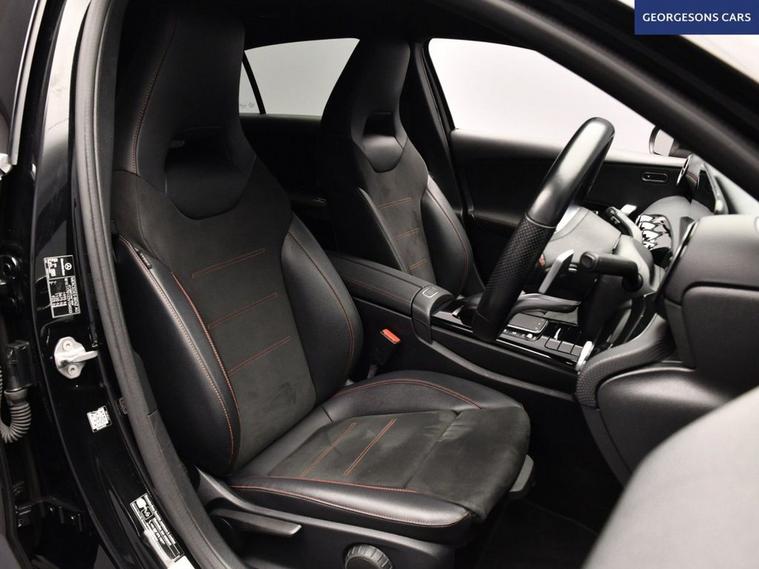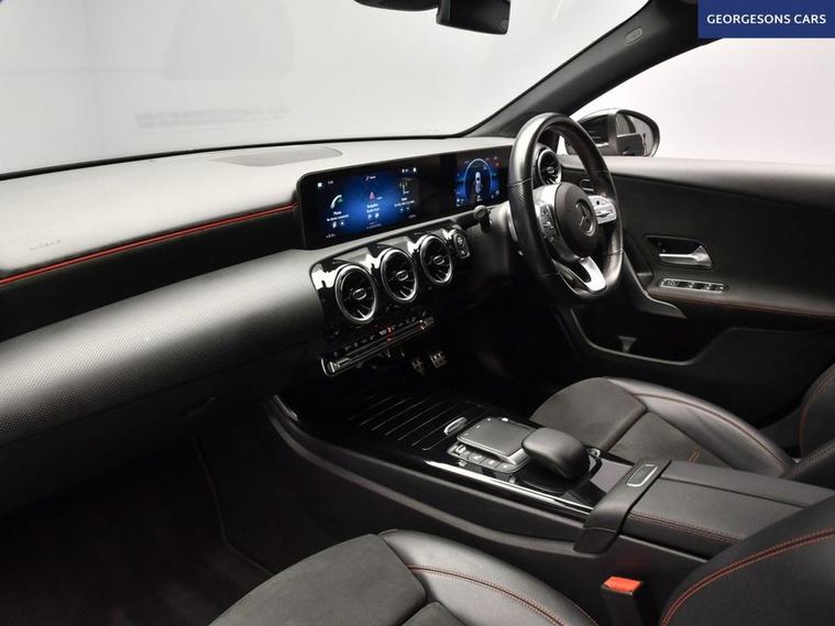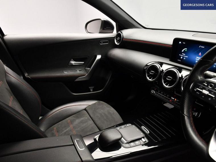 The Mercedes-Benz A200d AMG Line (Executive) combines a refined 2.0-litre turbo diesel engine with 150hp, delivering 0-62mph in 8.1 seconds and up to 65.7mpg in this front-wheel-drive setup with a smooth 8-speed DCT automatic transmission. The AMG Line (Executive) trim elevates the sporty appeal with premium features and a dynamic chassis for refined performance. Navigate effortlessly with integrated satellite navigation, Apple CarPlay, Bluetooth and DAB radio, ensuring seamless connectivity on every journey. Parking is a breeze thanks to the reverse camera and parking sensors, providing clear visibility and confidence in tight spaces. Stay comfortable with dual-zone climate control and heated seats, offering personalized warmth year-round. Cruise control with speed limiter and lane assist enhance safety and relaxation on highways. Selectable drive modes provide tailored performance, whether for efficiency or dynamic driving. he spacious five-door hatchback design includes a 370-litre boot for practicality.