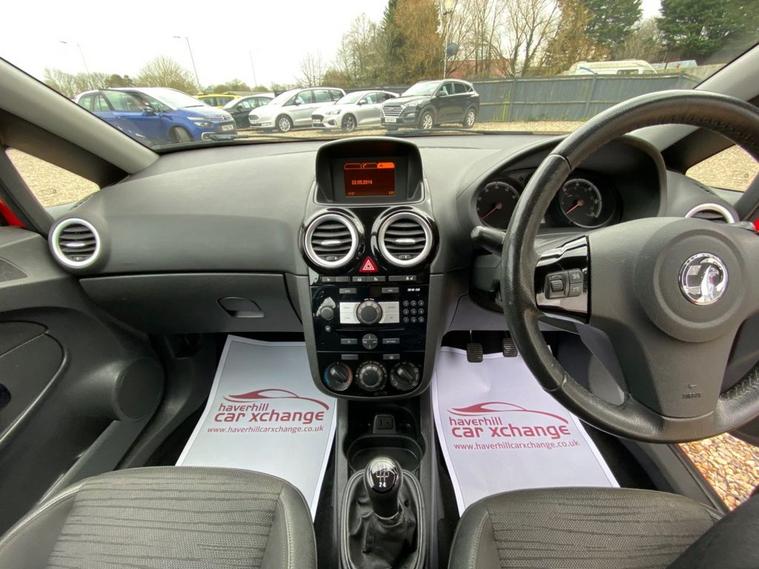 56, 120 MILES+RADIO-CD PLAYER-MP3 PLAYER+BLUETOOTH+HEATED HALF UPHOLSTERY+WINTER PACK+FLAME RED PAINT+16 INCH ALLOY WHEELS. At Haverhill Car Xchange we would like to offer you our our low mileage Vauxhall Corsa Excite Hatchback which has been finished in a Flame Red paint with Charcoal Morrocana Cloth upholstery. Specification Includes Radio-CD Player-MP3 Player, Mobile Phone System with Bluetooth Connectivity, AUX Connection 12 Volt Power Socket, Shift-Up Indicator, Electric Front Windows, Body Coloured Bumpers/Door Handles/Door Mirrors and Rear Roof Spoiler, Daytime Running Lights, Halogen Headlights, Front Fog Lights, Steering Wheel Mounted Controls, Tinted Glass, 16 Inch Alloy Wheels, Power Assisted Steering, Hill Start Assist, ABS Breaking System, Airbags, Remote Central Locking and ISOFIX Anchorage Points for Child Seats.