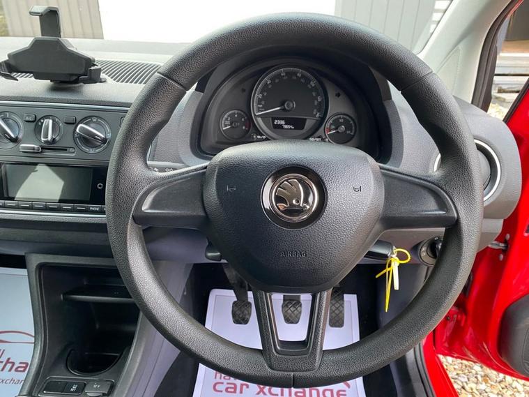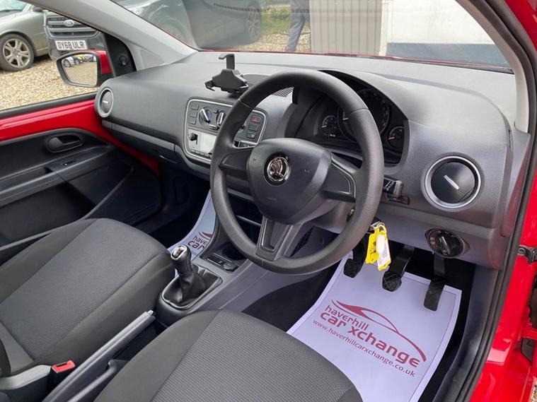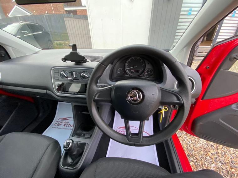THIS VEHICLE WILL COME WITH A NEW 12 MONTH MOT+RADIO+AIR-CONDITIONING+HALOGEN HEADLIGHTS WITH LED DAYTIME RUNNING LIGHTS+POWER STEERING+TORNADO RED PAINT+15 INCH ALLOY WHEELS. At Haverhill Car Xchange we would like to offer you our Skoda Citigo Colour Edition Hatchback which has been finished in a Tornado Red paint with Black Nano Cloth upholstery. Specification Includes Radio, 12 Volt Power Socket, Air-Conditioning, Electric Front Windows, Body Coloured Bumpers/Door Handles and Door Mirrors, Chrome Radiator Grille, Halogen Twin Headlights with Separate LED Daytime Running Lights, Front Fog Lights, Rear Fog Light, High Level 3rd Break Light, Steering Wheel, Privacy Glass, 15 Inch Alloy Wheels, Power Steering, ABS Breaking System, Alarm, Immobiliser, Remote Central Locking and ISOFIX Anchorage Points for Child Seats.