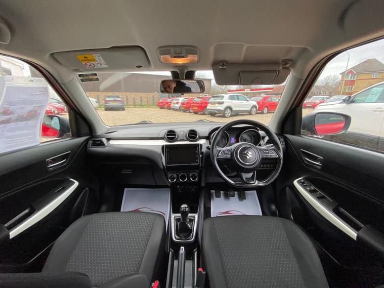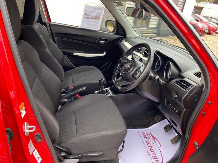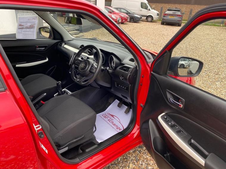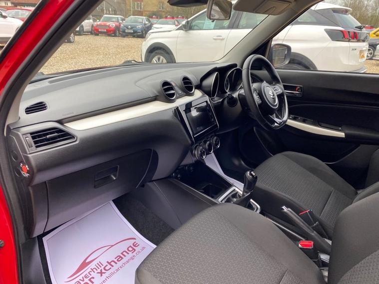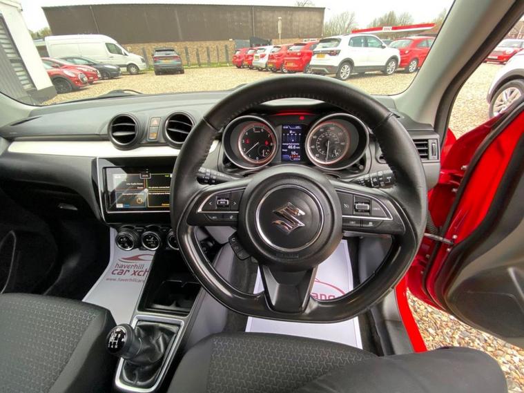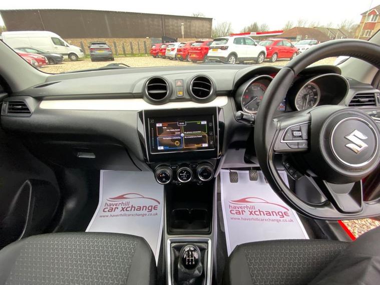 SATELLITE NAVIGATION SYSTEM+DAB DIGITAL RADIO+BLUETOOTH+LANE DEPARTURE WARNING+AUTOMATIC AIR-CONDITIONING+AUTOMATIC HEADLIGHT ACTIVATION+GUIDE-ME-HOME HEADLIGHT FUNCTION+PARKING ASSISTANCE WITH PARKING CAMERA+BURNING RED PEARL PAINT+16 INCH ALLOY WHEELS. At Haverhill Car Xchange we would like to offer you our Suzuki Swift SZ5 Hatchback which has been finished in a Burning Red Pearl paint with Black Cloth upholstery. Excellent Specification Includes a Satellite Navigation System, DAB Digital Radio, Bluetooth, USB and AUX Connections, 12 Volt Power Socket, Lane Departure Warning, Automatic Air-Conditioning, Cruise Control, Electric Front and Rear Windows, Body Coloured Bumpers/Door Handles/Rear Roof Spoiler and Door Mirrors, Automatic Headlight Activation, LED Daytime Running Lights, Guide-Me-Home Headlights, Front Fog Lights, LED Rear Lights, Parking Assistance with Parking Camera, Steering Wheel Mounted Audio Controls, Rear Privacy Glass, 16 Inch Alloy Wheels, Hill Hold Control, ABS Breaking System, Airbags, Alarm, Immobiliser, Remote Central Locking and ISOFIX Anchorage Points for Child Seats.