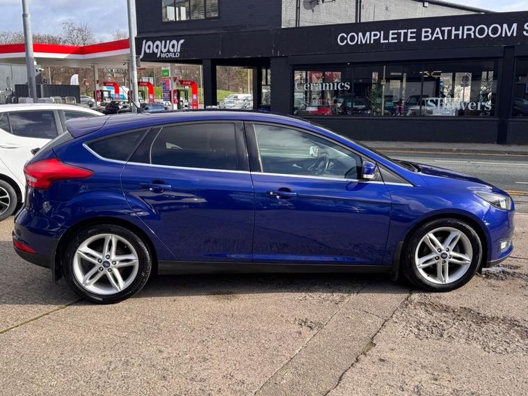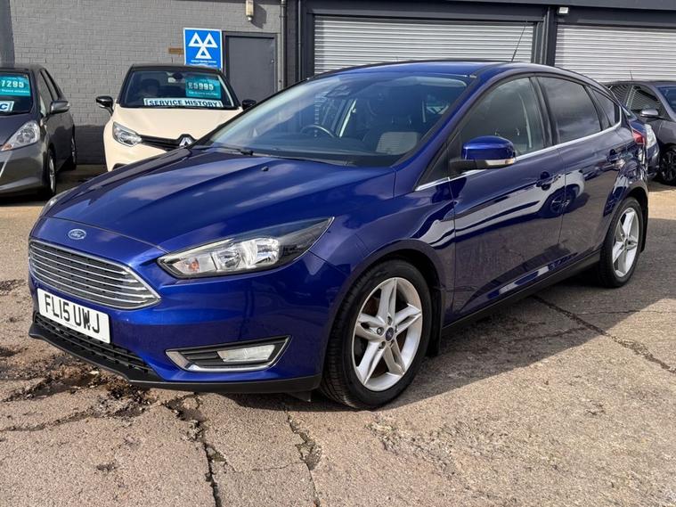 Boasting an impressive FULL SERVICE HISTORY and only ONE previous owner. OWNED BY ANTHONY FOR THE LAST 10 YEARS , this 2015 Ford Focus T Titanium presents a compelling proposition for any discerning driver. Powered by an efficient 1.0 litre petrol engine and meeting Euro 6 emissions standards, this model offers a remarkable 60 mpg fuel economy and £20 year tax making it a cost effective choice. The Titanium trim level ensures a comfortable and convenient experience, featuring a KeyFree System for effortless entry and start, dual zone climate control for personalised comfort, and rear PARKING SENSORS to aid manoeuvrability. Further enhancing its practicality are the discreet door edge protectors and the integrated BLUETOOTH handsfree system for safe and easy communication on the go and SAT NAV to ensure easier traveling. Over £1300 of extra upgraded specification. This Ford Focus stands out with its low mileage of just 59, 000 miles for its age, coupled with a clear vehicle history check and a full 12 months MOT provided on purchase, offering peace of mind. Its low CO2 emissions are another key highlight, indicating a more environmentally conscious performance compared to many similar vehicles. These combined factors, including its excellent fuel efficiency and comprehensive provenance, demonstrate that this Focus Titanium has been well cared for and offers exceptional value.