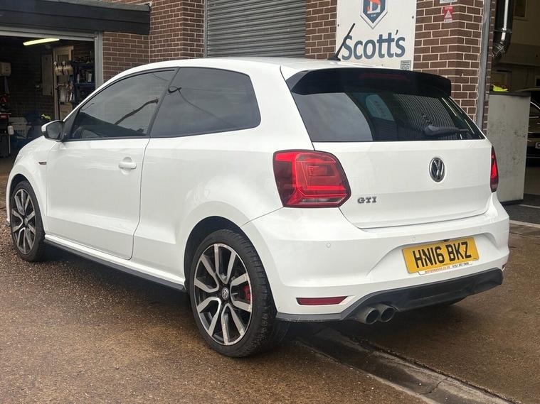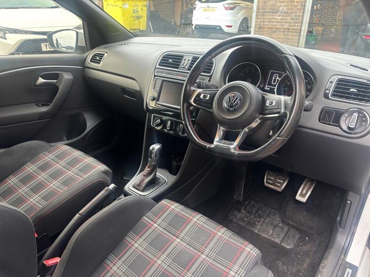 Scotts of Leeds used Car Sales are pleased to offer this VOLKSWAGEN POLO 1.8 TSI BlueMotion Tech GTI Hatchback 3 Door Petrol Automatic DSG in White. The car is in good condition throughout, in the best colour combination and a great specification including DAB radio, Bluetooth, Speed limiter, apple carplay, AUX and USB, reverse camera, Front and Rear parking sensors, automatic lights, privacy glass, CD player, isofix, Electric, windows, alloy wheels, and much much more. The car will be supplied with an up to date service record including 9 services, an MOT until January 2027 and 2 Keys ready to drive away. 3 MONTH NATIONWIDE WARRANTY provided with all vehicles. NATIONWIDE DELIVERY also available. A guaranteed 12 Months MOT can be added for an extra £100. DISCLAIMER: The above specification is true and correct. Any other specification listed elsewhere can sometimes be incorrect. Please check with Sales Executive to clarify this if needed prior to purchase.