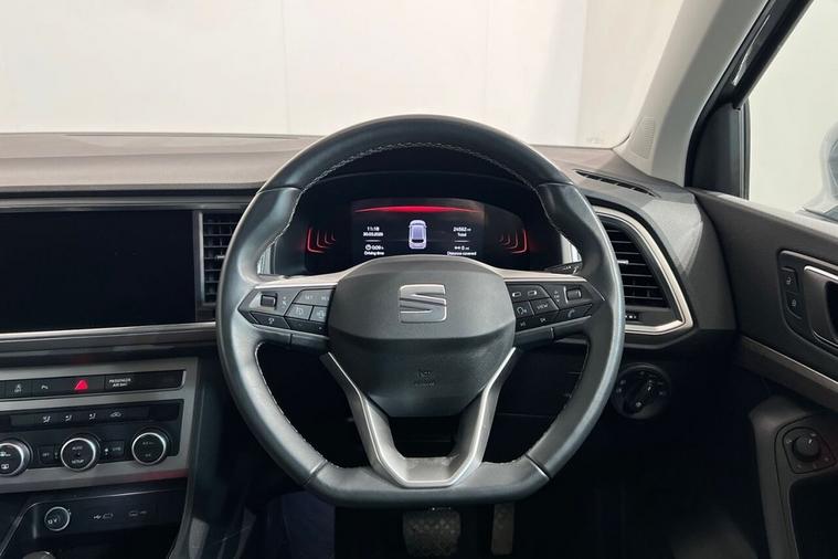 Discover the 2024 SEAT Ateca TSI EVO XPERIENCE, a stylish and practical SUV designed for everyday life. This Euro 6 compliant model boasts a responsive 1.5 litre petrol engine, offering an engaging driving experience with a 0-60mph acceleration time of just 9.0 seconds. The XPERIENCE trim level enhances the vehicles appeal with a suite of advanced features, including automatic LED headlamps with a cornering function for improved visibility and a convenient wireless phone charger to keep you connected on the go. This SEAT Ateca stands out with its generous boot space, providing ample room for all your luggage and shopping needs. Furthermore, its inclusion in a low insurance group makes it an economical choice for many drivers. The advanced Safety and Driving Pack, featuring a 360 degree camera system and a rear view camera, offers comprehensive parking assistance, making manoeuvring in tight spaces significantly easier. The Convenience Pack, which includes automatic headlights, further adds to the ease of use.