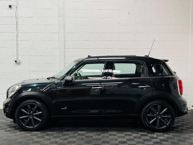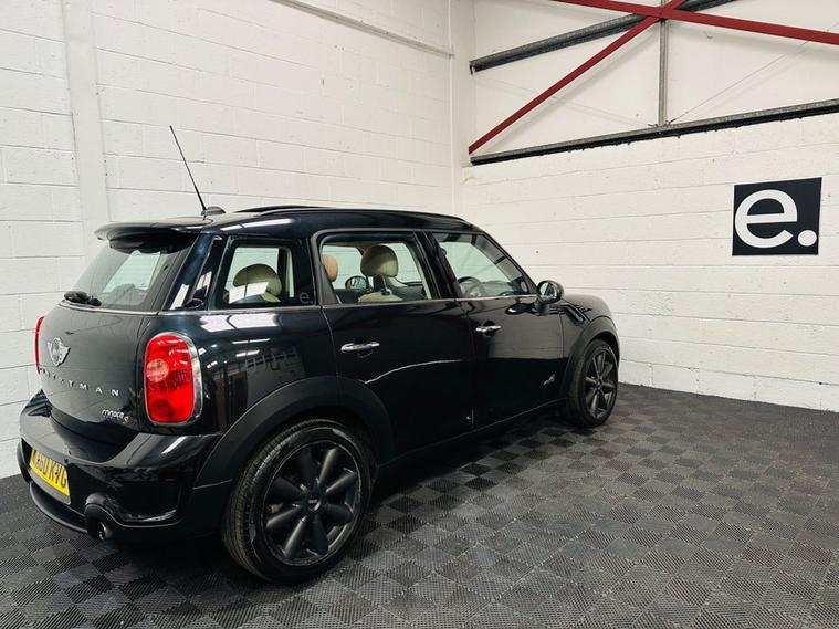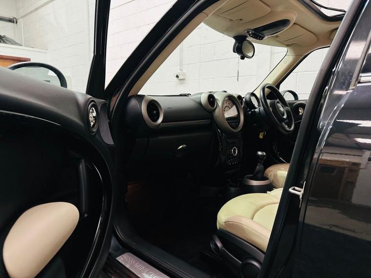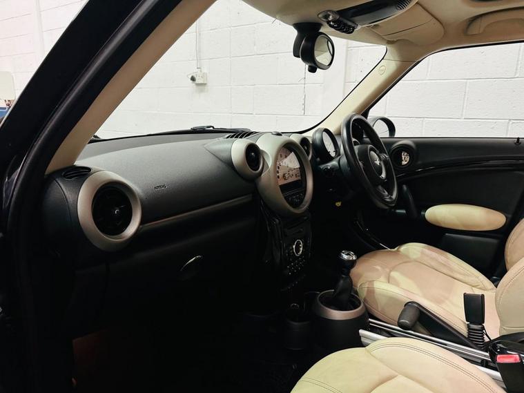 A lovely MINI 1.6 Cooper S Countryman ALL4 in Absolute Black with Polar Beige Punch Leather Interior which has covered 52k miles. Panoramic Roof, Bluetooth, Service History.
