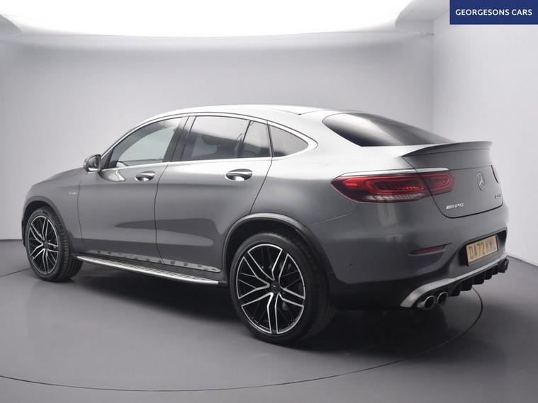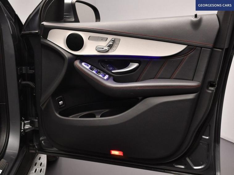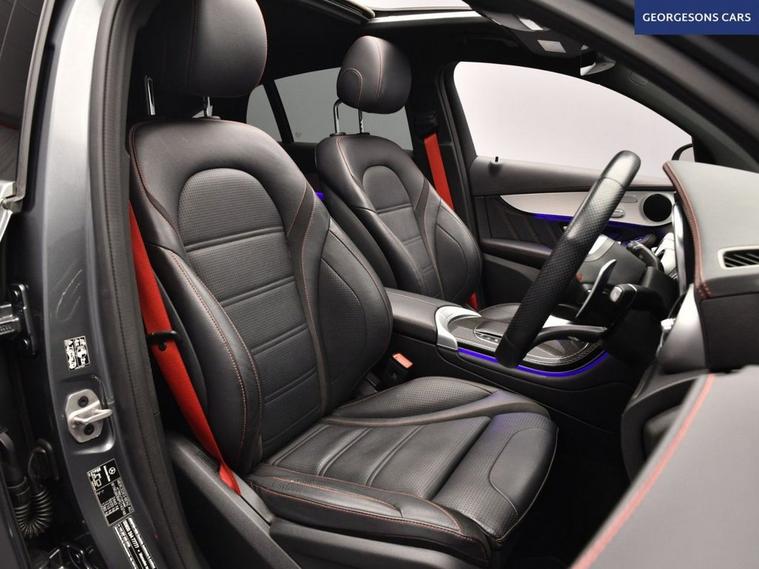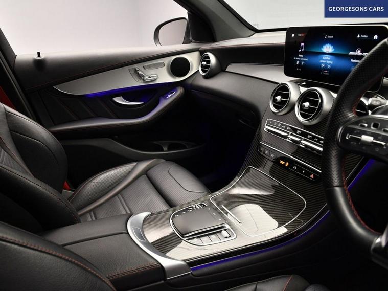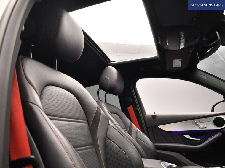 The Mercedes-Benz GLC43 V6 AMG (Premium Plus) combines a thunderous 3.0-litre biturbo V6 petrol engine with 390hp, delivering 0-62mph in 4.9 seconds and up to 34.0mpg in this all-wheel-drive 4MATIC setup with a lightning-fast 9-speed G-Tronic+ automatic transmission. The flagship AMG (Premium Plus) trim elevates performance and luxury with aggressive styling, and a premium interior. With one owner, this GLC43 is in excellent condition. Enjoy the airy cabin with the electric sunroof, while ambient lighting creates a sophisticated atmosphere. Immerse yourself in premium audio and stay connected with satellite navigation, Apple CarPlay, Bluetooth, and DAB radio. Parking is effortless thanks to the reverse camera, 360-degree camera, and parking sensors. Stay comfortable with dual-zone climate control, front and rear heated seats, heated steering wheel, and electric memory seats. Cruise control with speed limiter enhances relaxation on highways. The striking five-door coupe-SUV design includes a 550-litre boot for practicality.