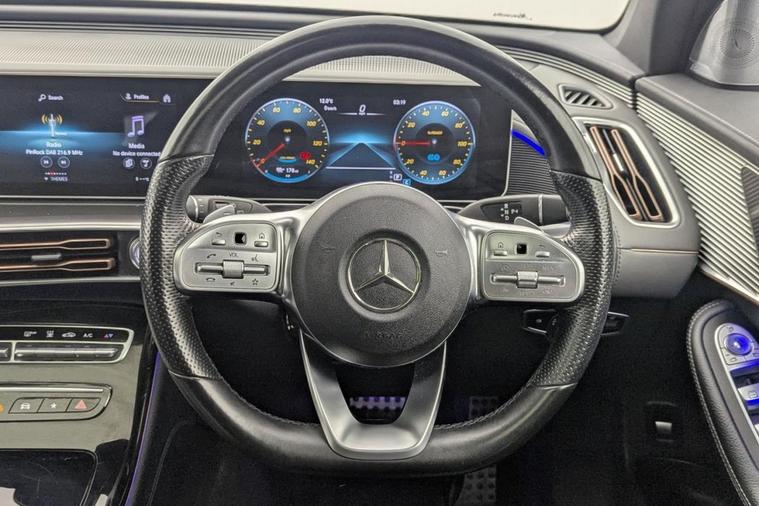 Henson Car Store presents the MERCEDES-BENZ EQC EQC 400 80kWh AMG Line (Premium Plus) SUV 5dr Electric Auto 4MATIC (408 ps) finished in White, this car comes with service history. This 2020 Mercedes Benz EQC 400 AMG Line (Premium Plus) has been cherished by just one owner since new. As an all electric, four wheel drive vehicle, it offers a sophisticated driving experience. The AMG Line trim enhances its sporty appeal, while the Premium Plus designation signifies a high level of specification. With a substantial 88 kWh battery, this EQC provides a maximum range of 244 miles when new, making it a practical choice for both daily commutes and longer journeys. Experience impressive performance with the EQC 400, capable of accelerating from 0 to 60 miles per hour in a swift 5.1 seconds, demonstrating its dynamic capabilities. Charging is convenient, with a full charge at home using a 7kW charger taking approximately 12 hours and 13 minutes, and rapid charging to 80% from empty achievable in just 45 minutes at a public charging station. This electric Mercedes Benz also boasts generous boot space, ensuring you have ample room for luggage or shopping. Stock Number 217