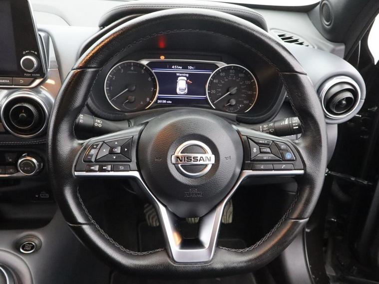This 2021 (DN71 EBK) Nissan Juke 1.0 DIG-T Tekna SUV 5dr Petrol Manual Euro 6 (s/s) (114 ps) is finished in sleek black and has covered just 26, 129 miles. Combining bold styling with advanced technology and impressive efficiency, this Nissan Juke Tekna petrol manual is a superb example of one of the UKs most popular compact SUVs. Powered by the responsive 1.0 DIG-T turbocharged petrol engine producing 114 ps, paired with a smooth 6-speed manual gearbox, this Euro 6 (s/s) compliant Juke delivers an engaging drive with excellent fuel economy. Its elevated SUV driving position offers enhanced visibility and comfort, making it ideal for both city commuting and longer motorway journeys. The range-topping Tekna specification ensures a high level of equipment, while this example also benefits from the Design Pack, enhancing the vehicles distinctive exterior styling and premium feel. The Heat Pack provides added comfort in colder months, while the Comfort Pack enhances everyday usability and convenience. Technology is a standout feature, with full Android Auto and Apple CarPlay integration, allowing seamless smartphone connectivity for navigation, calls and music streaming. Manoeuvring is made effortless thanks to front parking sensors, offering added confidence in tight urban spaces. With its striking black finish, low mileage and high specification, this Nissan Juke 1.0 DIG-T Tekna offers the perfect blend of practicality, modern technology and sporty design. A fantastic opportunity to own a stylish and economical used Nissan Juke SUV, delivering comfort, connectivity and efficiency in one well-rounded package.