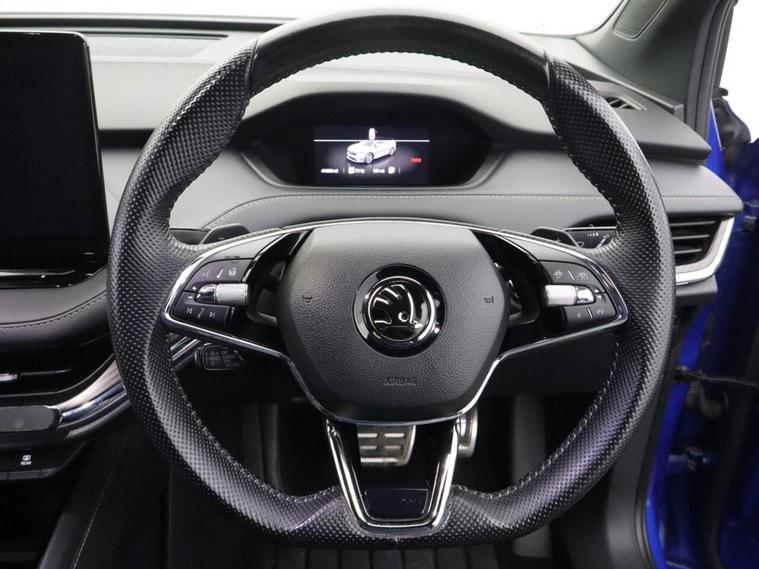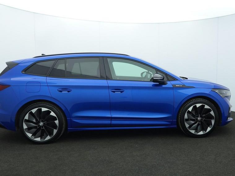 This 2022 (CX72 ZYF) koda Enyaq iV 80 SportLine 82kWh SUV 5dr Electric Auto (204 ps) is finished in striking blue and has covered 41, 688 miles. Combining sharp SportLine styling with impressive all-electric performance and practicality, this koda Enyaq 80 SportLine is a superb example of a premium electric SUV. Powered by a large 82kWh battery paired with a 204 ps electric motor, this Enyaq delivers smooth, instant acceleration and a refined, near-silent driving experience. With DC rapid charging capability (up to 125kW), it offers convenient charging options for both home and public networks, making it ideal for daily commuting and longer journeys alike. As a fully electric SUV, it provides zero tailpipe emissions and low running costs without compromising on performance. The SportLine specification enhances the Enyaqs dynamic presence with sporty exterior styling and a premium, driver-focused interior. Inside, the advanced Virtual Cockpit provides a fully digital and customisable driver display, delivering key driving information with clarity and precision. The impressive 13-inch touchscreen display offers intuitive control of navigation, media and vehicle settings, creating a modern and connected driving environment. Comfort and convenience are elevated with the Climate Package, ensuring a pleasant cabin environment in all seasons, while the Drive Sport Package enhances driving dynamics for a more engaging experience. Cruise control with speed limiter adds further practicality, making longer motorway journeys relaxed and efficient. With its bold blue finish, spacious SUV practicality and advanced electric technology, this koda Enyaq iV 80 SportLine electric SUV stands out as one of the most desirable used electric family SUVs on the market. Offering impressive range, rapid charging capability and premium features throughout, this koda electric automatic SUV is a fantastic opportunity to embrace stylish, efficient and future-focused motoring.