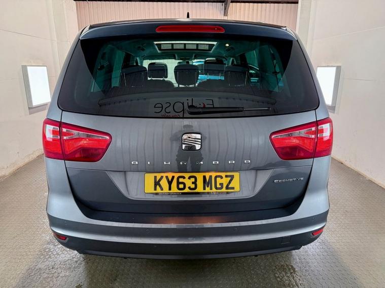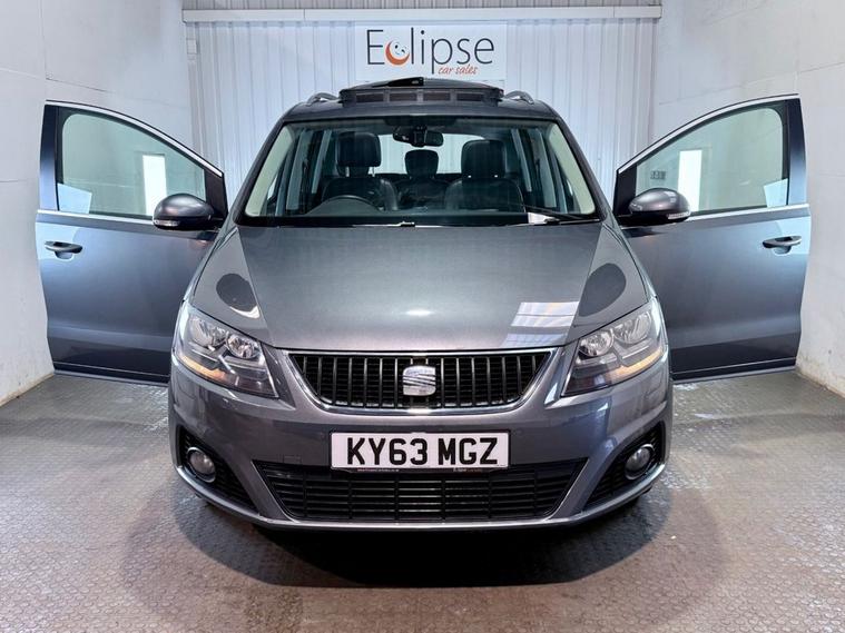 Seat Alhambra 2.0 TDI Eco-motive CR SE Lux MPV first registered in October 2013 (63 Reg). Finished in Reflex Silver with a Black Leather Interior and 17 Inch Alloy Wheels. Spec includes Sliding Panoramic Sunroof | Heated front Seats | Cruise Control with Speed Limiter | Tri Zone Climate Control | DAB Radio | Satellite Navigation | Bluetooth Connectivity | Rear View Camera | Front and Rear Parking Sensors | Powered Tailgate | Multifunction Steering Wheel. With a new Cambelt and Water Pump at 49970 Miles. Serviced at 57735 Miles | 77291 Miles | 87727 Miles | 97035 Miles | 105786 Miles | 119391 Miles.