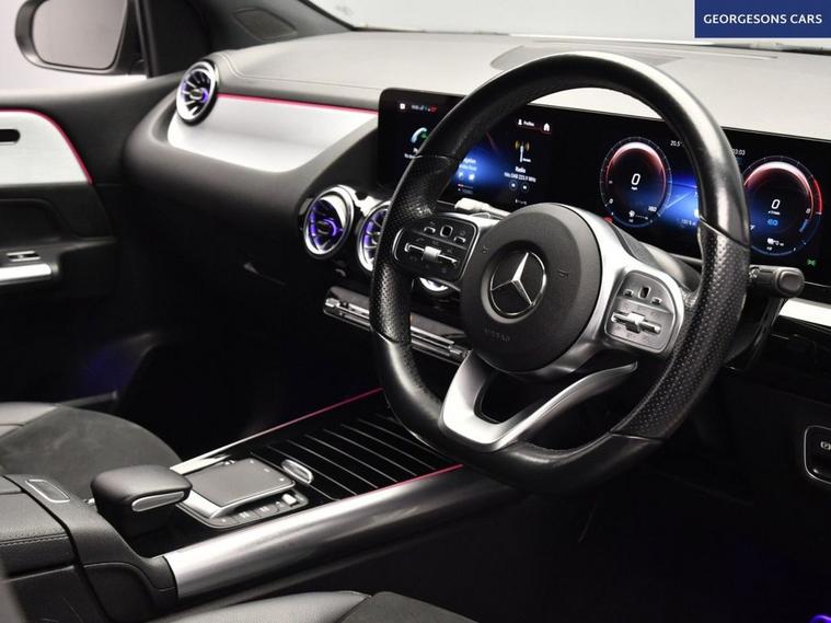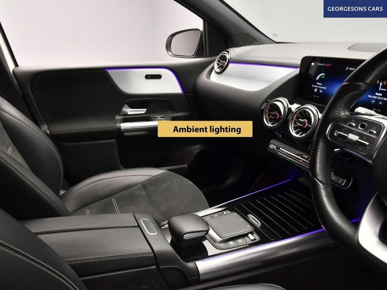 The Mercedes-Benz B250e AMG Line Edition (Premium) combines a responsive 1.3-litre turbo petrol engine with an electric motor for a total 218hp, delivering 0-62mph in 7.6 seconds, up to 42 miles pure-electric range and an official 235mpg in this front-wheel-drive setup with a smooth 8-speed DCT automatic transmission. The top-spec AMG Line Edition (Premium) brings sporty luxurY. Enjoy the electric tailgate for easy loading and ambient lighting for a refined cabin atmosphere. Navigate effortlessly with integrated satellite navigation, Apple CarPlay, Bluetooth and DAB radio. Parking is a breeze thanks to the reverse camera and parking sensors. Stay comfortable with dual-zone climate control and heated front seats. Cruise control with speed limiter and lane assist enhance safety and relaxation on every journey. The spacious five-door MPV design includes a 455-litre boot for practicality.