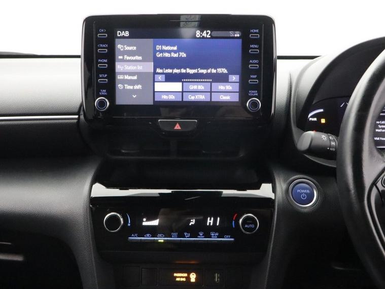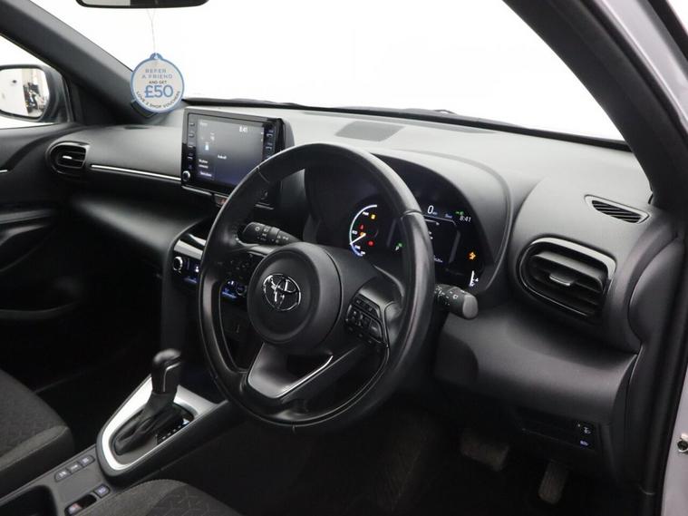 This 2023 (PJ23 HFM) Toyota Yaris Cross 1.5 VVT-h Design SUV 5dr Petrol Hybrid E-CVT Euro 6 (s/s) (116 ps) is finished in stylish silver and has covered 34, 518 miles. Combining Toyotas renowned hybrid technology with SUV practicality and modern styling, this Toyota Yaris Cross Hybrid Design is a superb example of an efficient and well-equipped compact SUV. Powered by the advanced 1.5 VVT-h petrol hybrid engine producing 116 ps, paired with a smooth E-CVT automatic transmission, this Euro 6 (s/s) compliant Yaris Cross delivers excellent fuel economy and low emissions without compromising everyday performance. The self-charging hybrid system seamlessly switches between petrol and electric power, making it ideal for urban commuting as well as longer motorway journeys. The Design specification offers an impressive level of equipment and distinctive styling. This example sits on eye-catching 17-inch alloy wheels 5 double spoke, machine faced in bi-tone dark grey, enhancing its confident road presence. Convenience is enhanced with Smart Entry and Push-Button Start, allowing effortless access and ignition. Technology is a key highlight, featuring the 8-inch Toyota Touch 2 multimedia system with full smartphone integration including Apple CarPlay and Android Auto, keeping you connected on every journey. Intelligent Adaptive Cruise Control ensures relaxed motorway driving, automatically adjusting speed to maintain a safe distance from vehicles ahead, while the reversing camera provides added confidence when parking. With its elevated driving position, spacious interior and versatile boot capacity, this Toyota Yaris Cross 1.5 Hybrid SUV offers practicality alongside outstanding efficiency. Stylish, reliable and economical, this silver Toyota Yaris Cross petrol hybrid automatic is a fantastic opportunity to own a modern and highly sought-after compact hybrid SUV.