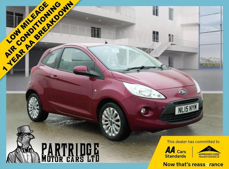 HPI CLEAR, SUPPLIED WITH NEW MOT, SUPPLIED WITH NEW SERVICE, LOW MILEAGE, CHEAP INSURANCE, AIR CONDITIONING, ALLOY WHEELS, 3 DOORS, MANUAL, 3 MONTHS WARRANTY, 1 YEAR AA BREAKDOWN, AA DEALER **2015 Ford Ka 1.2 Zetec: Low Mileage, Air Con, New MOT! AA Approved!** ******** A fantastic, high-specification example of the perfect first car or economical daily commuter! This is the 2015 Ford Ka in the highly desirable Zetec specification, finished in the unique and stunning **Blush**. Boasting **Low Mileage**, this vehicle drives superbly and feels remarkably fresh. The Zetec trim comes loaded with features often missing from basic city cars, most notably **Air Conditioning** and upgraded **Alloy Wheels**. With its iconic **3-Door** styling, its compact footprint makes it incredibly easy to park. Powered by the proven **1.2L petrol engine**, it offers legendary reliability, excellent fuel economy, and **Cheap Insurance**. ******** This vehicle will be fully prepared by our workshop to the highest standard. To ensure the next owner drives away with complete peace of mind, it will be supplied with a **brand new service** and a **fresh 12-month MOT**, ensuring reliable motoring from the moment you drive away. ******** **Key Features:** *** **Low Mileage**: A lightly used example that feels tight and responsive. *** **Zetec Specification**: The highly desirable premium trim adding fantastic styling and comfort. *** **Air Conditioning**: Essential for keeping the cabin cool and comfortable all year round. *** **Blush Paintwork**: A beautiful, rare, and highly sought-after factory colour. *** **Alloy Wheels**: Stylish factory-fitted wheels complementing the Kas modern stance. *** **1.2L Petrol Engine**: A robust 4-cylinder engine that is incredibly cheap to run. *** **Cheap Insurance**: Sits in a very low insurance group, keeping annual premiums to a minimum. *** **3-Door Styling**: The quintessential city car shape, perfect for navigating tight streets. ******** **Buy with Confidence:** *** **HPI Clear**: Verified history check. *** **Supplied with a New Service**: Freshly prepared by our expert mechanics. *** **Supplied with a New MOT**: A full 12-month certificate for the new owner. *** **3 Months Warranty**: Comprehensive cover included for reassurance. *** **1 Year Breakdown Cover**: Nationwide AA assistance included. *** **AA Approved Dealer**: Inspected to exacting AA standards. ******** **Partridge Motor Cars - Your Trusted AA Dealer:** We are 5-star rated for a reason! Every vehicle undergoes a meticulous inspection to meet our high expectations. ******** **Interested?** *** Call **01403485928** or visit * dealer's website to book a viewing. *** Finance Available: Flexible options to drive away today. *** Part Exchange Welcome: Trade in your old car for a great deal. ******** A stunning low-mileage Zetec model in rare Blush paint. Fully prepared and ready for the road!