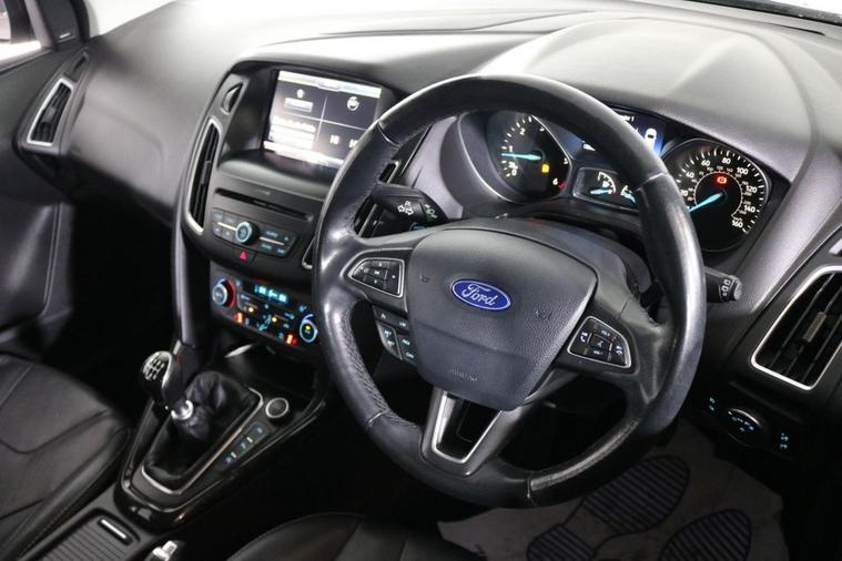 AWB Motors are pleased to present this stunning Ford Focus finished in Magnetic Grey complemented by 18in ALLOY WHEELS and Front Fog Lights. Sit in complete luxury with FULL HEATED WINSOR LEATHER Interior. At the heart of the dash is a Colour Display showing functions such as SATNAV. Make your calls handsfree using the BLUETOOTH Interface. Charge your phone using the USB port. Perfect for listening to your favourite music either from your phone through the AUX port or simply using the DAB Radio. These alongside all other radio functions can be controlled using the Multifunction Steering Wheel and sounds fantastic through the SONY SOUND SYSTEM. Park with ease thanks to PARKING CAMERA with FRONT AND REAR SENSORS Fitted. Drive in comfort whatever the journey with both CRUISE CONTROL and CLIMATE CONTROL with AIR CONDITIONING and QuickClear HEATED WINDSCREEN. Safe for your children with ISOFIX Anchorage Points. Other useful ancillaries include Auto Lights and Wipers, POWER FOLD Electric Mirrors, 4 Way Electric Windows and Remote Central Locking. Cheap to run being just £20 TAX and thanks to its Fuel Efficient Engine achieving 75+MPG. 6 stamp SERVICE HISTORY - 2 KEYS.