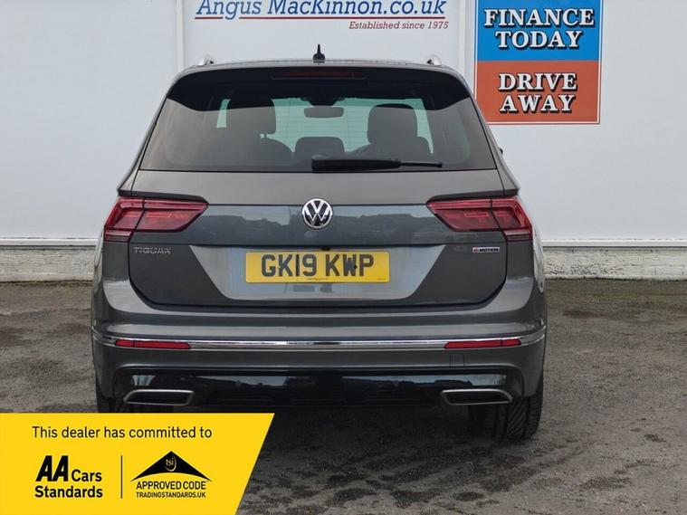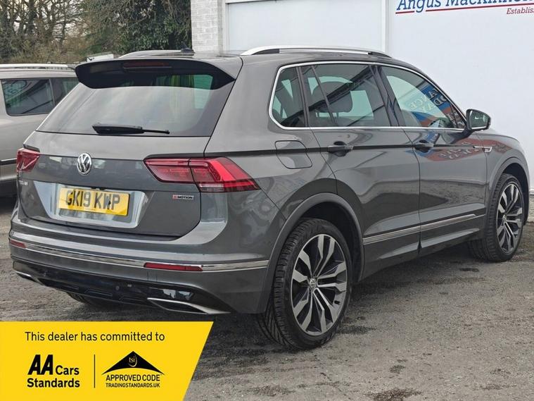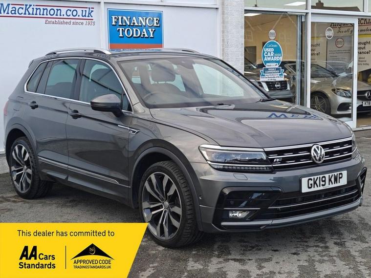 This 2019 Volkswagen Tiguan TSI R-Line Tech is a superb example of a capable and well equipped SUV. This vehicle comes with two keys, a full service history and has only had one former keeper. With its powerful 2.0 litre petrol engine and four wheel drive system, this Euro 6 compliant model offers a robust towing weight of 2500 kg, making it ideal for a variety of needs. Inside, youll find the R-Line Tech trim which includes a Composition Media system with Bluetooth connectivity, front and rear parking sensors for effortless manoeuvring, and a stunning opening panoramic sunroof that floods the cabin with light. ========= Specification Panoramic Sunroof Discover Navigation Touch-Screen System Area View with Park Assist (360 Camera) Adaptive Cruise Control (ACC) Front Assist with City Emergency Braking & Pedestrian Protection LED Headlights with Dynamic Light Assist Keyless Entry & Start with Electric Tailgate Car-Net App Connect (Apple CarPlay & Android Auto) 3-Zone Electronic Climate Control DCC Dynamic Chassis Control Active Info Display (Digital Cockpit) Heated Front Seats Lane Assist 4MOTION Active Control (AWD System) Parking Sensors Front & Rear ========= Service History 06/06/2020 - Volkswagen - 15042 Miles 15/02/2021 - Volkswagen - 25116 Miles 12/11/2021 - Volkswagen - 37287 Miles 19/08/2022 - Volkswagen - 50205 Miles 19/04/2023 - Volkswagen - 60690 Miles 06/03/2024 - Independent - 63376 Miles 12/03/2025 - Independent - 71280 Miles =========