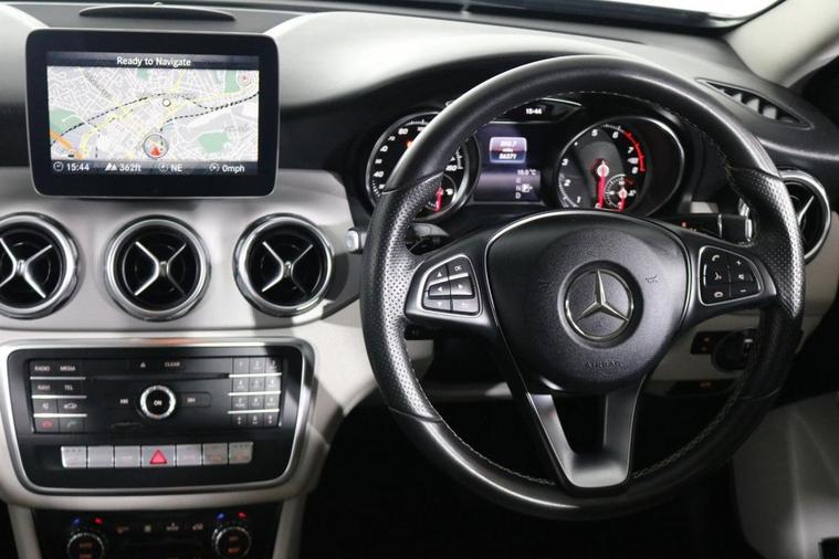 This well maintained Mercedes GLA200 Sport Executive finished in Mountain Grey looks fantastic complemented by 18 inch Alloy Wheels and Rear Privacy Glass. Find your way with integrated SATELLITE NAVIGATION with 8 inch LCD Display. Park in ease with REVERSE CAMERA and FRONT & REAR PARKING SENSORS. Sit in luxury with FULL CRYSTAL GREY LEATHER Upholstery with HEATED FRONT SEATS. Keep connected with BLUETOOTH Phone System. Comfortable to drive with Dual-Zone CLIMATE CONTROLLED AIR CONDITIONING and CRUISE CONTROL with Speed Limiting Function. Safe to journey with Attention Assist and Active Braking Assist. Well equipped with Power-Operated Tailgate and Auto Headlights. Also fitted with ISOFIX seats, Multifunctional Steering Wheel, Dynamic Select and Remote Door Locking with 2 x keys. Buy in confidence with SERVICE HISTORY with 8 x Documented Services (7 from Mercedes + 1 from Ourselves).
