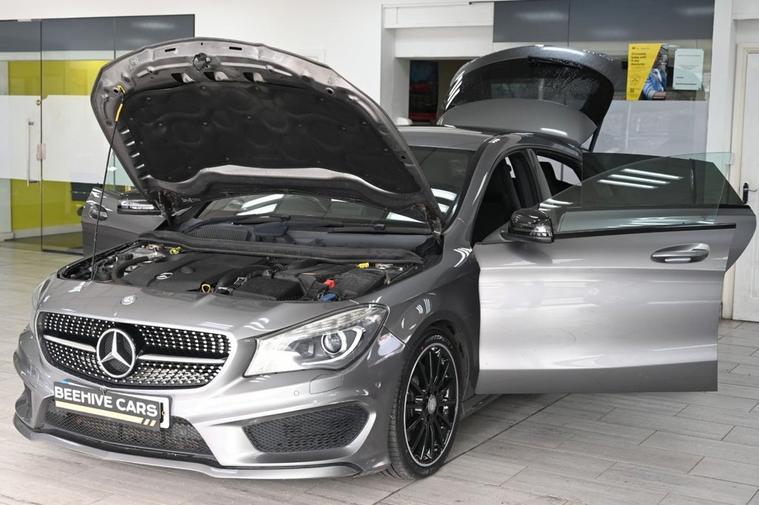 DRIVE AWAY TODAY OR HOME DELIVERY TO YOUR DOORSTEP FINANCE & PART EXCHANGE ARRANGED ONLINE** 7 DAY MONEY BACK GUARANTEE** Lovely car Mercedes Cla220 cdi amg sport shooting brake in metallic mountain grey with 1 owner from new full service history sat nav cd radio bluetooth media usb reverse camera half leather seats with armrest electric electric folding door mirrors front and rear parking aid sensors xenon lights flat bottom steering wheel with f1 style paddleshifts sport manual eco driving modes electric push button tailgate alloys privacy