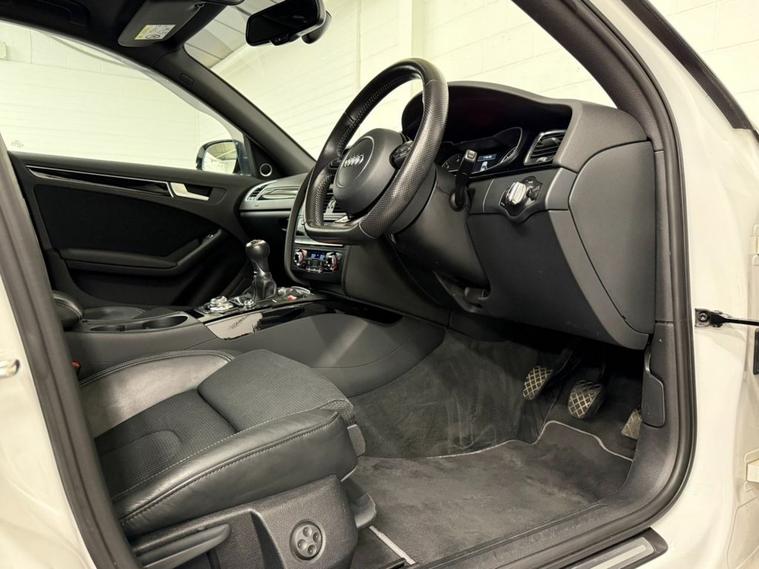 Finished in Ibis White with Sprint Cloth Leather S Line Interior. Features include 19 5 Spoke V Design Alloy Wheels, Black Styling Package, Sports Suspension, Concert Radio System with 6.5 Display Screen, Bang & Olufsen Sound System, Audi Music Interface, Bluetooth Interface, Voice Control, Satellite Navigation, DAB Digital Radio, FM / AM, CD, MP3, AUX, Audi Parking System Plus, Front & Rear Parking Sensors, Heated Front Seats, Electronic Three Zone Climate Control, Bi-Xenon Plus Headlights with Coming Home Function, LED Daytime Running Lights, Cruise Control, Electrically Adjustable & Heated Door Mirrors, Automatic Wipers with Rain Sensor, Piano Black Inlays, Rear Privacy Glass, Auto Opening Boot Lid, ISOFIX, 3 Spoke Leather Multi-Function Flat Bottomed Steering Wheel, Manual 6 Speed Transmission Plus Much More Standard Specification. This Audi A4 Black Edition is offered in excellent condition having covered only 63657 miles from new by its 4 former keepers. The car comes complete with a service history consisting of the following - 28/09/2015 at 5407 miles, 20/12/2023 at 49324 miles, 16/12/2024 at 55862 miles and 27/02/2026 at 63658 miles. PLEASE CALL OR E-MAIL FOR FURTHER DETAILS OR TO ARRANGE A PERSONALISED VIDEO OR VIEWING.