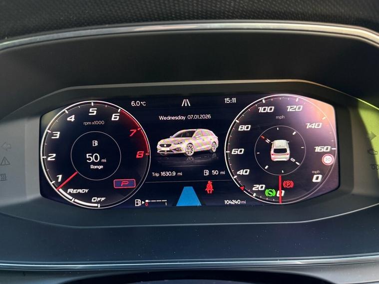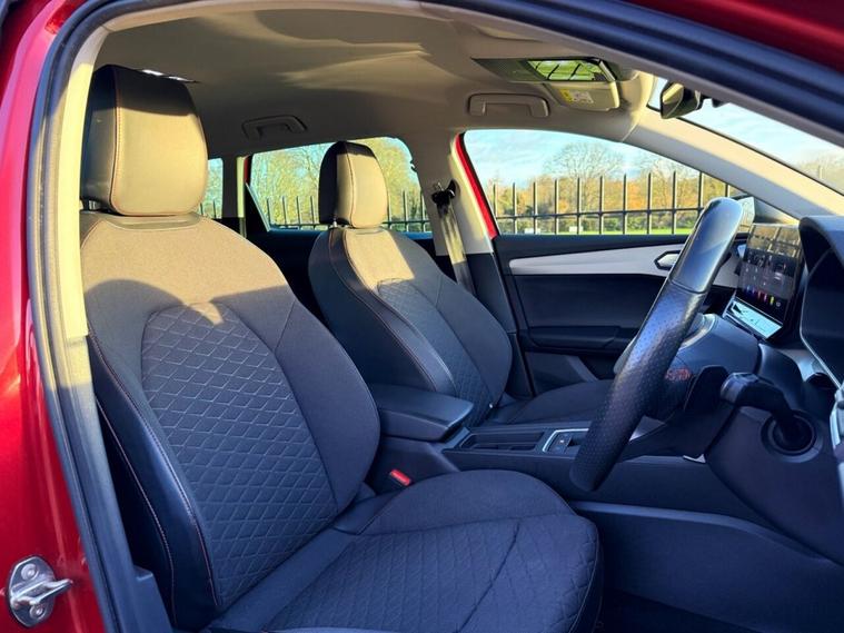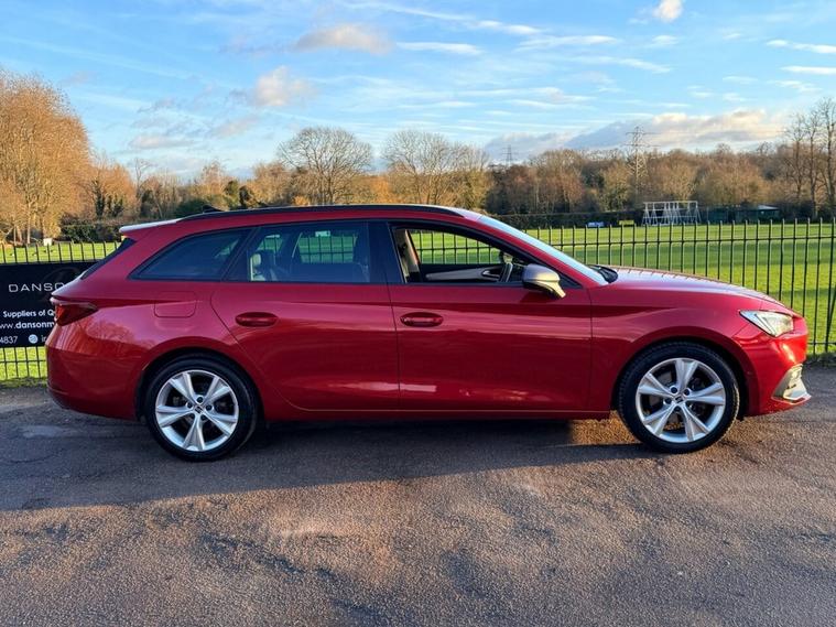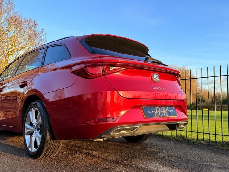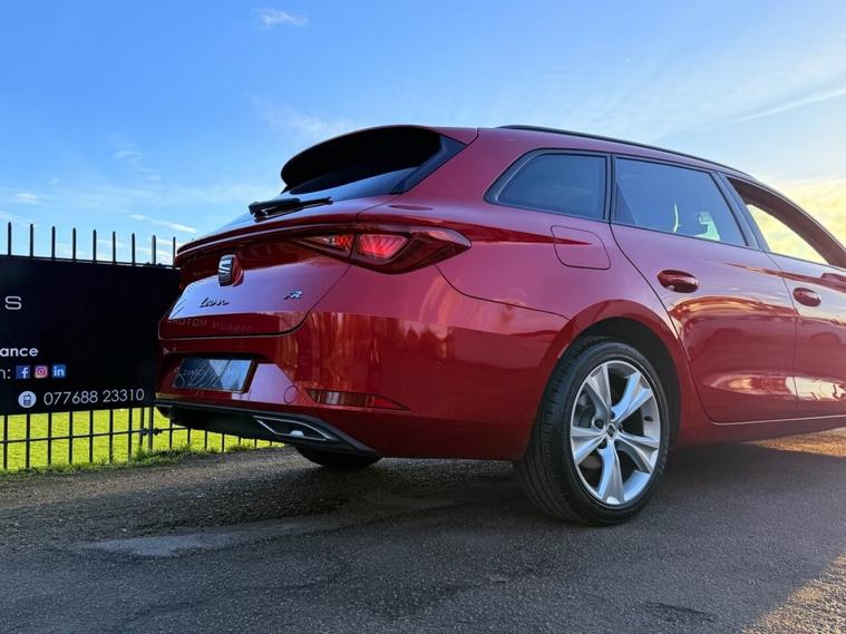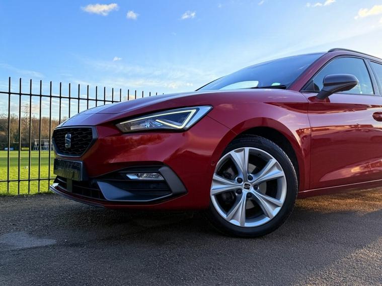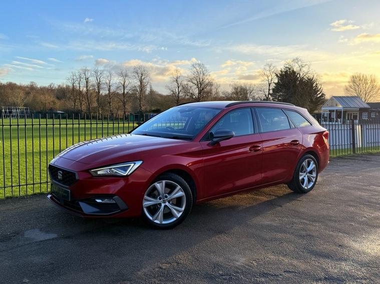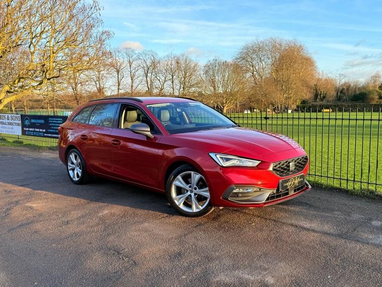 ***FOR SALE is a lovely SEAT Leon FR eTSI MHEV Estate in Desire Red! With only 1 owner from new and full SEAT service history (cambelt done)! The car comes with 2 keys and features the following specification: Safety & Driving Package, Virtual Dash, Apple Car Play/Android Auto, Front & Rear Parking Sensors, Bluetooth Telephone Connectivity, Satellite Navigation, DAB Radio, Changeable Driving Modes, Wireless Phone Charging Cradle, Park Assist, Power Folding Electric/Heated Wing Mirrors, Interior LED Background Lighting, Keyless Start, Auto Headlights, 17 FR Alloys! MOT until April 26! ULEZ exempt!