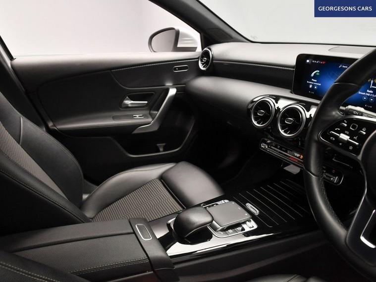 The Mercedes-Benz A180d Sport (Executive) combines a refined 1.5-litre turbo diesel engine with 116hp, delivering 0-62mph in 10.5 seconds and up to 68.9mpg in this front-wheel-drive setup with a smooth 7-speed DCT automatic transmission. The Sport (Executive) trim brings premium style with 17-inch alloy wheels and a high-grade interior. With five services, including four at Mercedes-Benz main dealers, this A-Class is in excellent condition. Navigate effortlessly with integrated satellite navigation, Bluetooth and DAB radio. Parking is a breeze thanks to the reverse camera and parking sensors. Stay comfortable with dual-zone climate control and heated front seats. Paddle-shift gears, cruise control with speed limiter, lane assist and selectable drive modes deliver refined, safe driving every day. The practical five-door hatchback includes a 370-litre boot.
