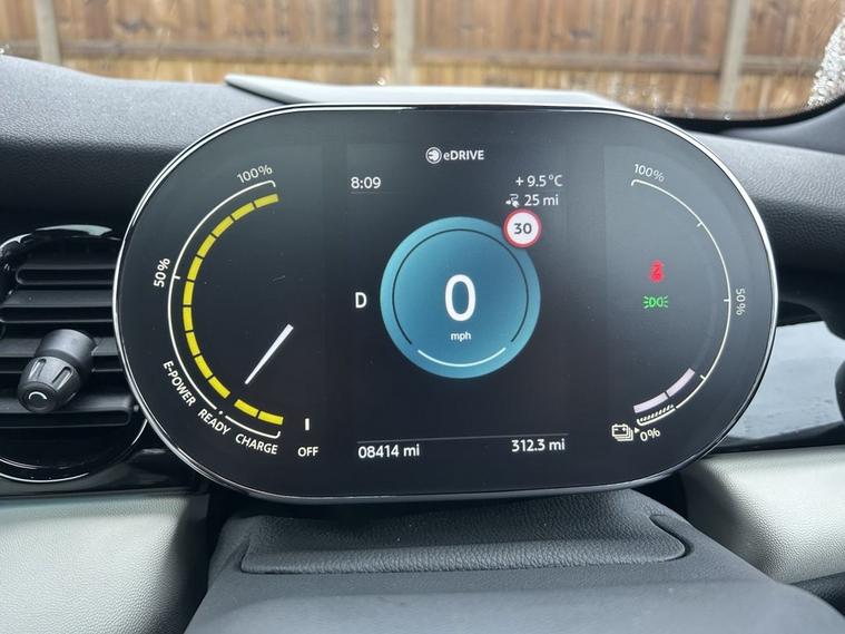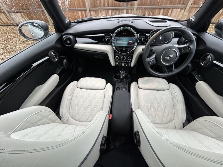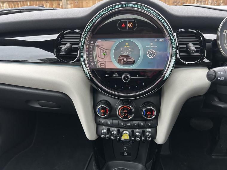 This 2023 MINI Electric Hatch Cooper SE Level 3 boasts exceptionally low mileage, having covered just 8414 miles, and has had only one owner from new, with a clear vehicle history check. This electric model features a 33 kWh battery offering a maximum range of 142 miles when new. Charging is convenient, with a full charge at home taking approximately 5 hours and 15 minutes using a 7kW charger, while rapid public charging can achieve 80% capacity in just 36 minutes. Notable features include a striking Multitone White Roof, a premium Harman Kardon sound system for an immersive audio experience, and an opening Panoramic Glass Sunroof that floods the cabin with light. The driving experience of this MINI Electric Hatch is further enhanced by its impressive acceleration, reaching 0 to 60mph in a brisk 7.3 seconds, demonstrating its spirited performance. The Level 3 trim ensures a comfortable and sophisticated journey, equipped with automatic dual zone climate control for personalised comfort and a rear view camera to aid with parking. These elements combine to offer a superior driving proposition compared to other vehicles in its class, providing a blend of efficiency, technology, and engaging performance.