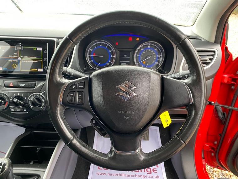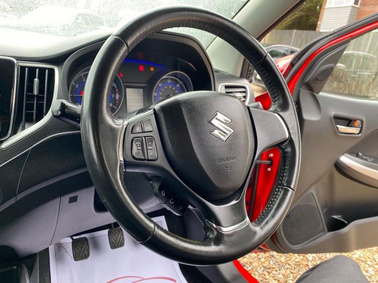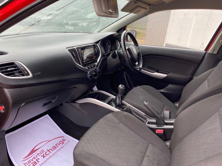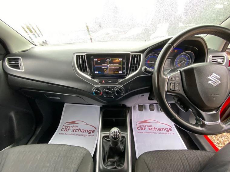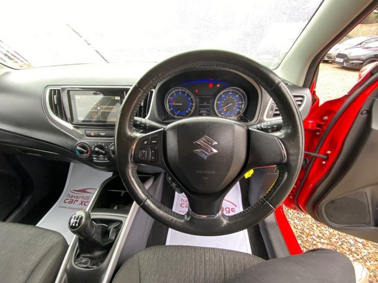 ONLY £20 A YEAR ROAD TAX+THIS VEHICLE WILL COME WITH A NEW 12 MONTH MOT+DAB DIGITAL RADIO-BLUETOOTH+AIR-CONDITIONING+AUTOMATIC HEADLIGHT ACTIVATION+PARKING ASSISTANCE WITH PARKING CAMERA+FIRE RED PAINT+16 INCH ALLOY WHEELS. At Haverhill Car Xchange we would like to offer you our Suzuki Baleno SZ-T Hatchback which has been finished in a Blazing Red paint with Black Cloth upholstery. Specification Includes DAB Digital Radio, Bluetooth Integrated into Audio Unit, 1 Volt Power Socket, Air-Conditioning, Gear Shift Indication Light, Electric Front Windows, Body Coloured Bumpers/Door Handles/Door Mirrors and Rear Roof Spoiler, Black Front Grille with Chrome Accent, Automatic Headlight Activation, LED Daytime Running Lights, Guide-Me-Home Headlights, HID Projector Headlights, Front Fog Lights, High Mounted Break Light, Rear Parking Assistance with Parking Camera, 3-Spoke Leather Steering Wheel, Rear Privacy Glass, 16 Inch Alloy Wheels, Power Steering, ABS Breaking System, Child Proof Rear Door Locks, Airbags, Alarm, Immobiliser, Remote Central Locking and ISOFIX Anchorage Points for Child Seats.