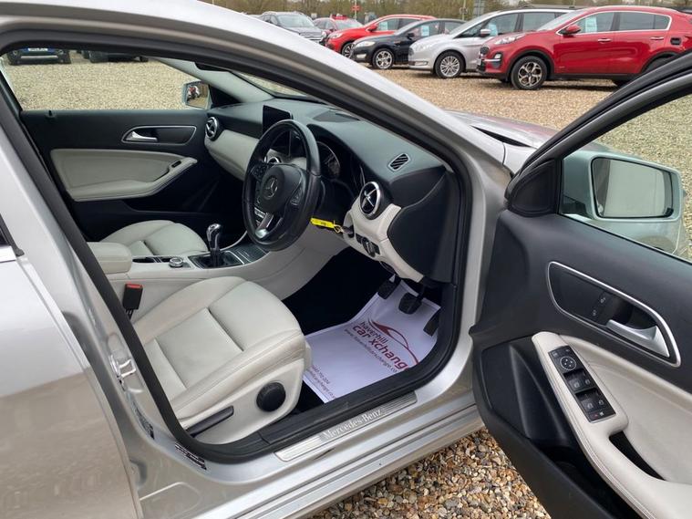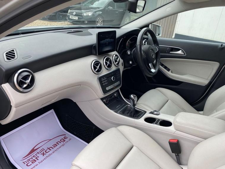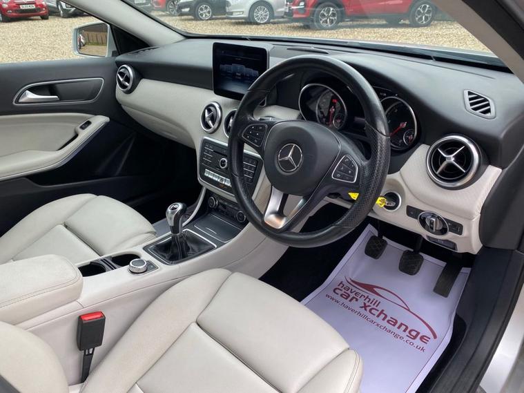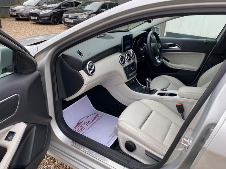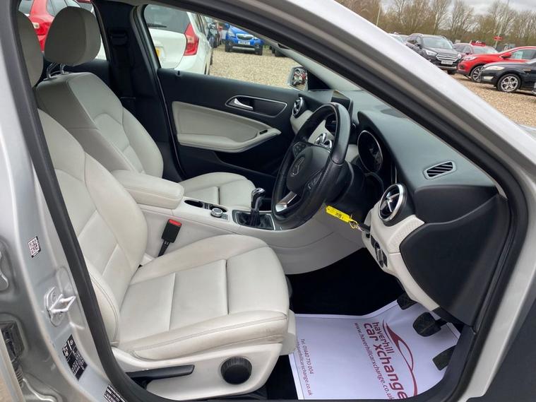ONE OWNER+ONLY 62, 986 MILES+8 INCH MEDIA DISPLAY WHICH FEATURES SATELLITE NAVIGATION SYSTEM+DAB RADIO-CD-MP3 COMPATIBILITY+SMARTPHONE INTEGRATION+CRUISE CONTROL+LUXURY AUTOMATIC CLIMATE CONTROL AIR-CONDITIONING+LUXURIOUS HEATED LEATHER UPHOLSTERY+AUTOMATIC HEADLIGHT ACTICVATION+RAIN-SENSING WINDSCREEN WIPERS+PARKING ASSISTANCE+POLAR SILVER PAINT+17 INCH ALLOY WHEELS. At Haverhill Car Xchange we would like to offer you our ONE OWNER, LOW MILEAGE Mercedes-Benz A-Class Sport Executive which has been finished in a metallic Polar Silver paint with luxurious HEATED Crystal Grey Artico Leather upholstery. Excellent Specification Includes an 8 Inch Media Display which features a Garmin Satellite Navigation System, Media Interface, DAB Radio-CD-MP3 Compatibility, Smartphone Integration, Mercedes Connect Me, Luxury Automatic Climate Control Air-Conditioning, Cruise Control with Speed Limiter, Shift Point Indicator, X4 Electric Windows, Body Coloured Bumpers/Door Handles/Door Mirrors with Direction Indicators, Diamond Black Radiator Grille with Chrome Insert, Automatic Headlight Activation, Halogen headlights with Daytime Running Lights, High level LED Third Break Light, Rain-Sensing Windscreen Wipers, Parking Assistance with Reverse Camera, 3-Spoke Multifunction Leather Steering Wheel, Electric Parking Break, keyless Go Starting Function, Heated Rear Glass, Speed Sensitive Power Steering, 17 Inch Alloy Wheels, Crash-Responsive Emergency Lighting, ABS Breaking System, Airbags, Alarm, Immobiliser, Remote Central Locking and ISOFIX Anchorage Points for Child Seats.