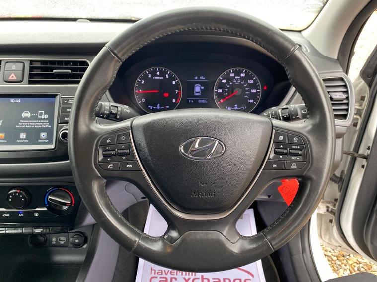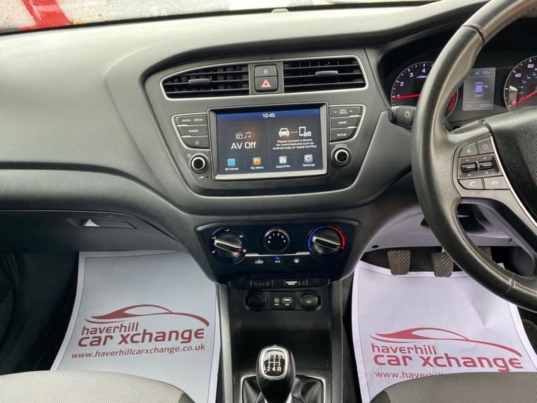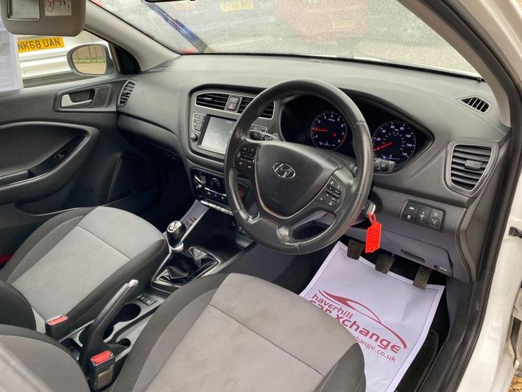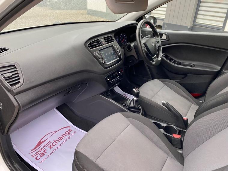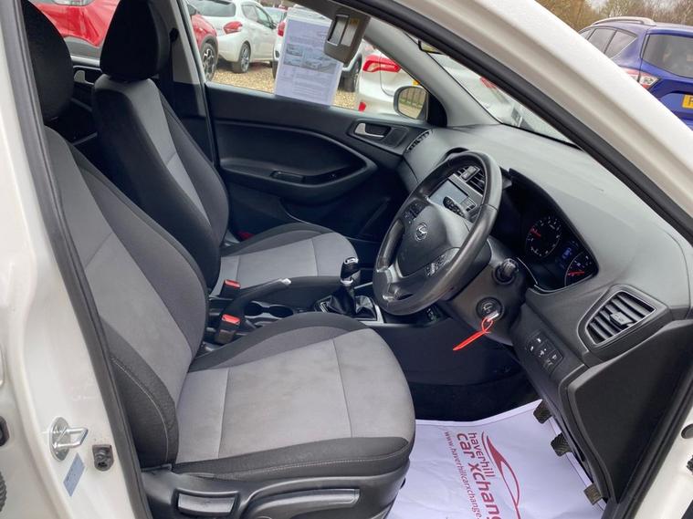 ONLY 53, 246 MILES+LONG MOT UNTIL 30.01.2027+7 INCH TOUCHSCREEN DISPLAY-DAB DIGITAL RADIO+BLUETOOTH+AIR-CONDITIONING+AUTOMATIC HEADLIGHT ACTIVATION WITH DUSK SENSOR+PARKING ASSISTANCE+POLAR WHITE PAINT+15 INCH ALLOY WHEELS. At Haverhill Car Xchange we would like to offer you our LOW MILEAGE Hyundai I20 SE Launch Edition which has been finished in a Polar White paint with Black-Grey Cloth upholstery. Specification Includes a 7 Inch Touchscreen which features DAB Digital Radio, Bluetooth, Phone Connection Apple CarPlay/Android Auto, Lane Keep Assist. Air-Conditioning, Cruise Control with Speed Limiter, Electric Front and Rear Windows with Drivers Anti-Trap and One-Touch Up-Down Control, Body Coloured Bumpers/Door Handles/Rear Roof Spoiler and Door Mirrors with Integrated Side Indicators, Automatic Headlight Activation with Tunnel Detection, LED Daytime Running Lights, High Beam Assist, Halogen Headlights with Static Cornering Lights, Front Fog Lights, Parking Assistance, Leather Multifunction Steering Wheel, Tinted Glass, 15 Inch Alloy Wheels, Electric Power Steering, ABS Breaking System, Airbags, Alarm, Immobiliser, Remote Central Locking and ISOFIX Anchorage Points for Child Seats.