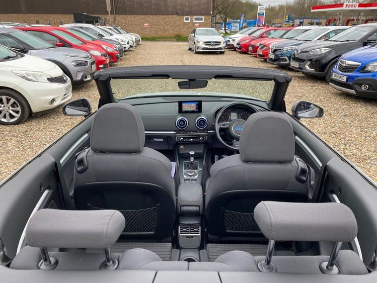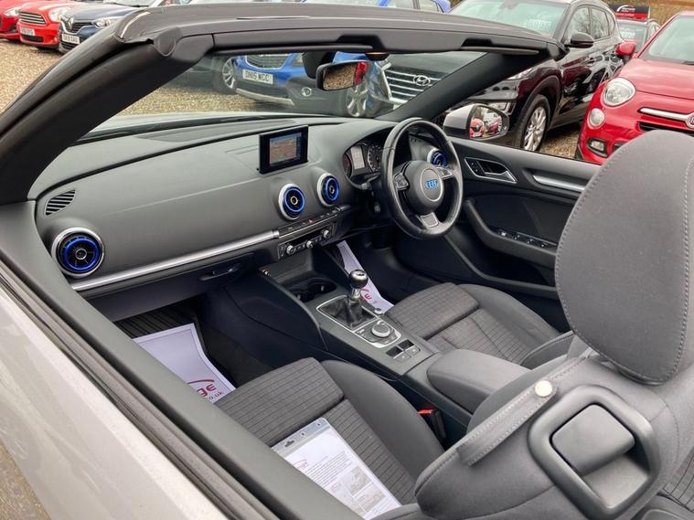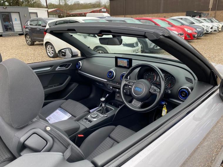 CONVERTIBLE+ONLY £35 A YEAR ROAD TAX+£2, 665.00 OF FEATURES WHICH INCLUDE A 5.8 INCH DISPLAY SCREEN+SATELLITE NAVIGATION SYSTEM+AUDI MUSIC INTERFACE+DAB DIGITAL RADIO+BLUETOOTH INTERFACE+DUAL ZONE CLIMATE CONTROL AIR-CONDITIONING+AUTOMATIC HEADLIGHT ACTIVATION+RAIN-SENSING WINDSCREEN WIPERS+LUXURIOUS HEATED SEATS WITH HEAD LEVEL HEATING+PARKING ASSISTANCE WITH PARKING CAMERA+METALLIC LOTUS GREY PAINT+17 INCH ALLOY WHEELS. At Haverhill Car Xchange we would like to offer you our CONVERTIBLE Audi A3 Sport Cabriolet which has been finished in a metallic Lotus Grey paint with luxurious HEATED Black-Silver Rallye Sports Seats. Excellent Specification Includes a 5.8 Inch Colour Screen which features a Satellite Navigation System, Audi Music Interface, DAB Digital Radio, Bluetooth Interface, Voice Control Telephone, 12 Volt Power Socket, Dual Zone Climate Control Air-Conditioning, Gear Change Indicator, Front and Rear Electric Windows, Body Coloured Bumpers/Door Handles and Door Mirrors with Integrated LED Indicators, Automatic Headlight Activation, Daytime Running Lights, Halogen Headlights, Coming-Leaving Home Headlights, Front Fog Lights, High Mounted Third Break Light, Rain-Sensing Windscreen Wipers, Sports Seats, Parking Assistance with Parking Camera, Multifunction 3-Spoke Sports Leather Steering Wheel, Heated Seats with Head Level heating, Comfort Package, 17 Inch Alloy Wheels, Power Steering, ABS Breaking System, Airbags, Alarm, Immobiliser, Remote Central Locking and ISOFIX Anchorage Points for Child Seats.