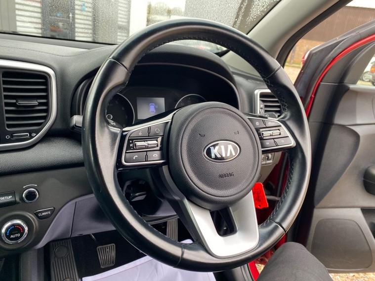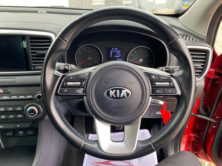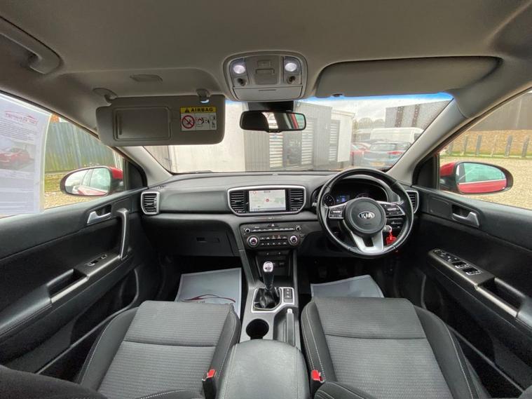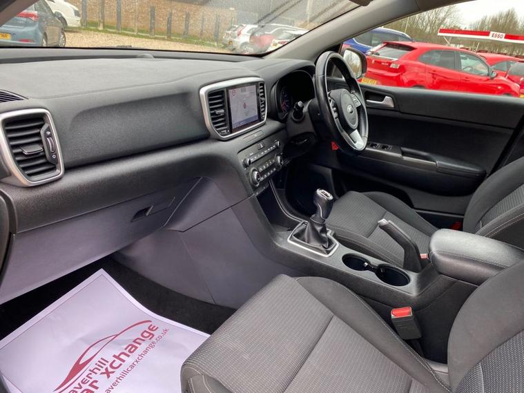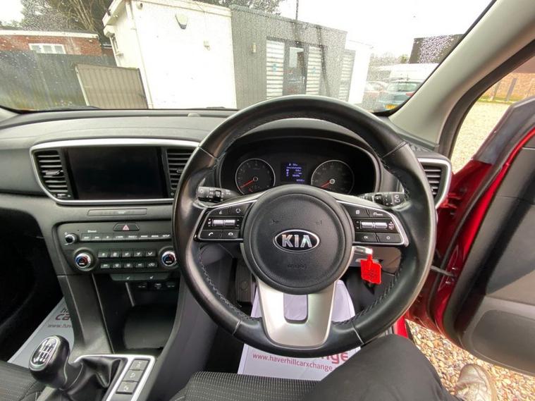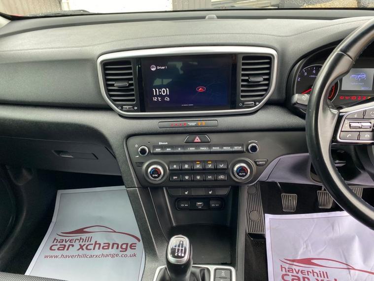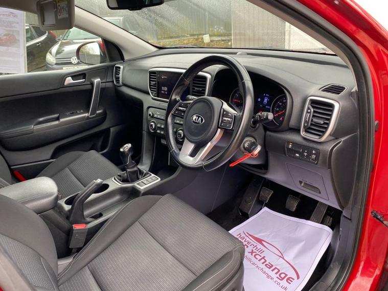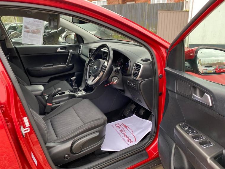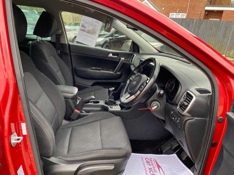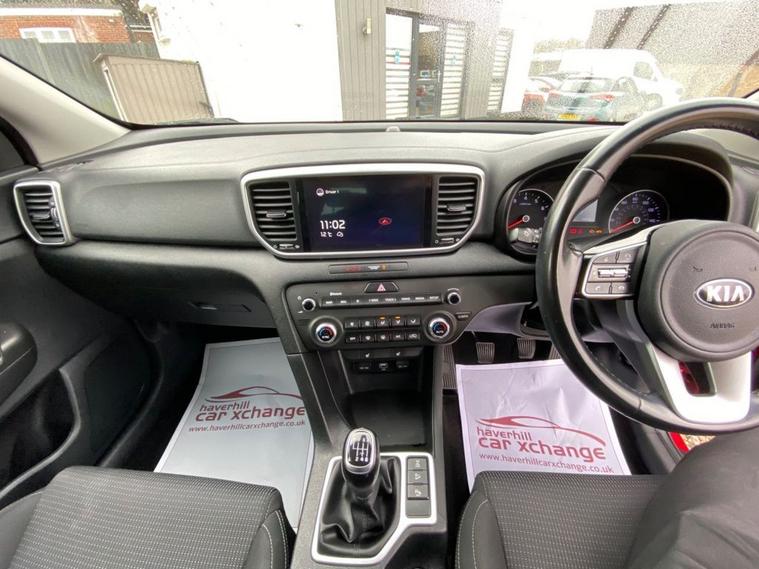 8 INCH TOUCHSCREEN WITH TOMTOM SATELLITE NAVIGATION SYSTEM WITH EUROPEAN MAPPING AND TRAFFIC MESSAGING CHANNEL+DAB RADIO-CD-MP3 COMPATIBILITY+BLUETOOTH+DUAL ZONE CLIMATE CONTROL AIR-CONDITIONING+LUXURIOUS HEATED SEATS+AUTOMATIC HEADLIGHT ACTIVATION+RAIN-SENSING WINDSCREEN WIPERS+PARKING ASSISTANCE WITH PARKING CAMERA+INFRA RED PAINT+17 INCH ALLOY WHEELS. At Haverhill Car Xchange we would like to offer you our Kia Sportage GPF SUV which has been finished in an Infra Red paint with luxurious HEATED Black Premium Cloth upholstery. Excellent Specification Includes an 8 Inch Touchscreen Satellite Navigation System with European Mapping, Kia Connected Services Featuring TOMTOM-Traffic-Speed Cameras-Local Search and Weather Updates, DAB Radio with MP3 Compatibility, Apple CarPlay/Android Auto, Bluetooth with Music Streaming, USB Ports, 12 Volt Power Sockets in Front and Rear Consoles, Lane Keeping System, Dual Zone Climate Control Air-Conditioning, Cruise Control with Speed Limiter, Gear Shift Indicator, All-Round Electric Windows, Body Coloured Bumpers/Door Handles/Rear Roof Spoiler and Door Mirrors with Integrated Side Indicators, Automatic Headlight Activation, Bi-Function Halogen Headlights, Welcome and Follow-Me-Home Headlight Functionality, LED Daytime Running Lights, Projection Front Fog Lights, Rain-Sensing Windscreen Wipers, Parking Assistance with Parking Camera, Multifunction Leather Steering Wheel, Heated Seats, Tinted Glass, 17 Inch Alloy Wheels, Child Safety Door Locks, Impact Sensing Door Unlocking, ABS Breaking System, Airbags, Alarm, Immobiliser, Remote Central Locking and ISOFIX Anchorage Points for Child Seats.