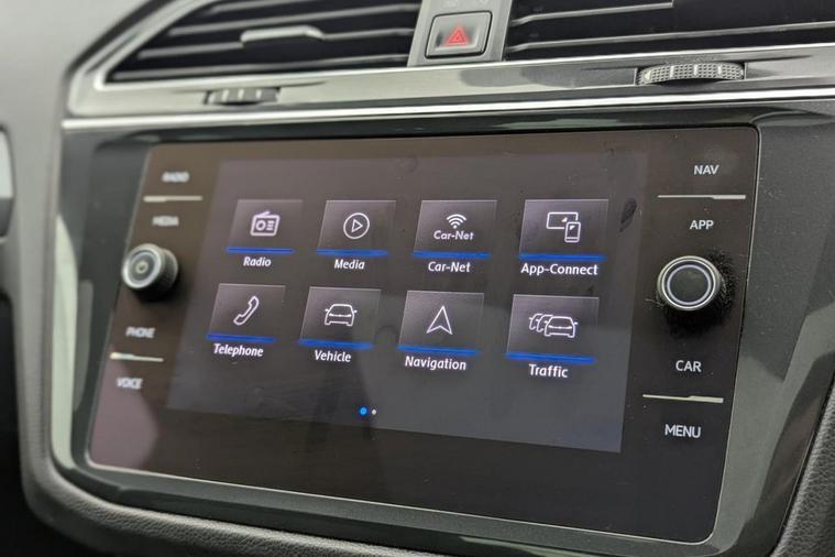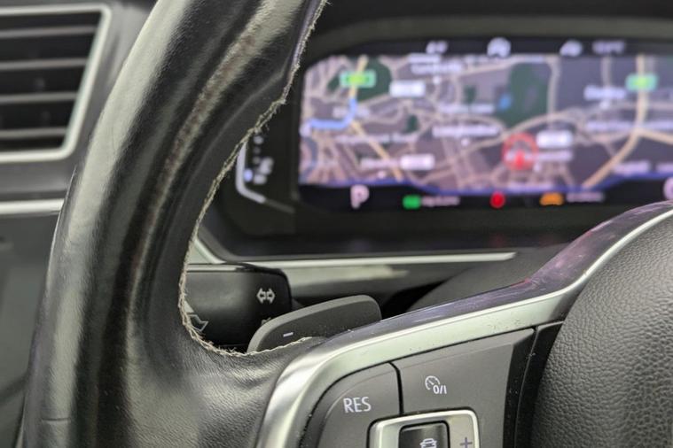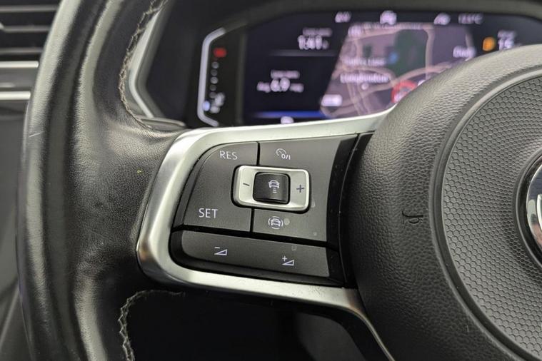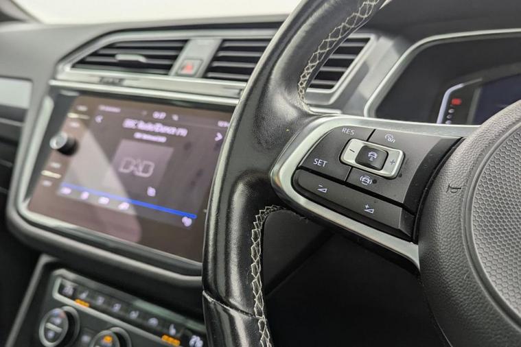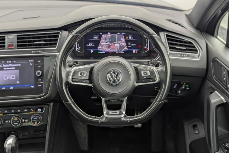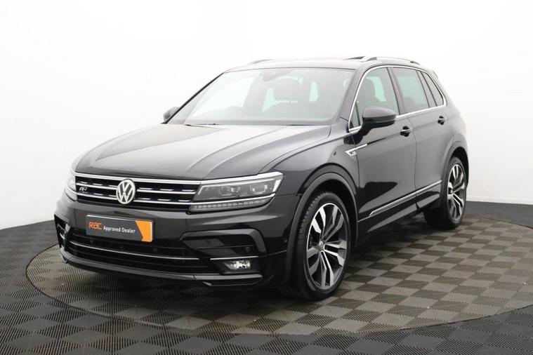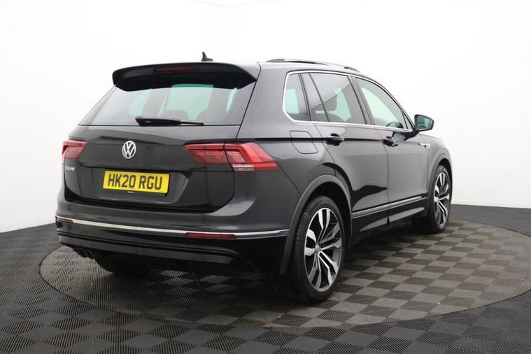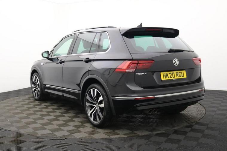 Henson Car Store presents the VOLKSWAGEN TIGUAN 2.0 TDI R-Line Tech SUV 5dr Diesel DSG Euro 6 (s/s) finished in Black, this car comes with service history. This 2020 Volkswagen Tiguan TDI R-Line Tech is a superb example, having been owned by only one person since new. This particular model boasts the desirable R-Line Tech trim and is powered by an efficient 2.0 litre diesel engine, meeting Euro 6 emissions standards. Inside, youll find a host of convenient features designed to enhance your driving experience, including a dusk sensor for automatic headlights, adaptive cruise control for effortless motorway journeys, and heated front seats for added comfort. The Composition Media System with Bluetooth connectivity keeps you entertained and connected, while Car-Net App Connect, compatible with both Android Auto and Apple CarPlay, seamlessly integrates your smartphone. This Tiguan stands out with its impressive fuel economy, achieving a highlight of 46 miles per gallon, which indicates it is more economical than many similar vehicles. Furthermore, its low insurance group rating suggests that running costs will be more affordable. Practicality is also a strong point, with a large boot space offering ample room for luggage, shopping, or sports equipment, making it a versatile choice for families and individuals alike.