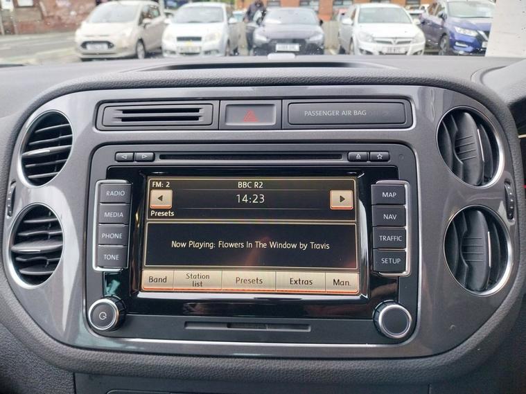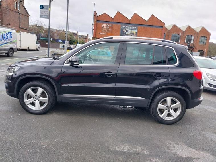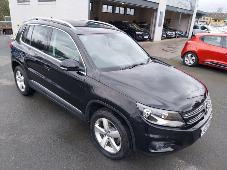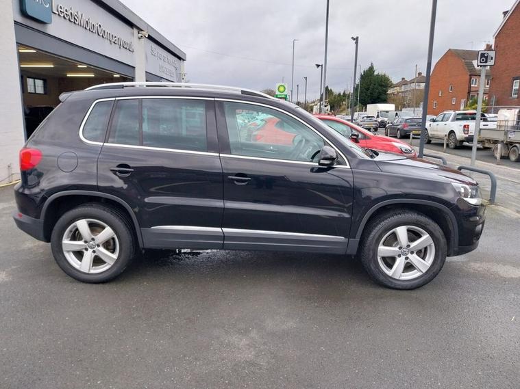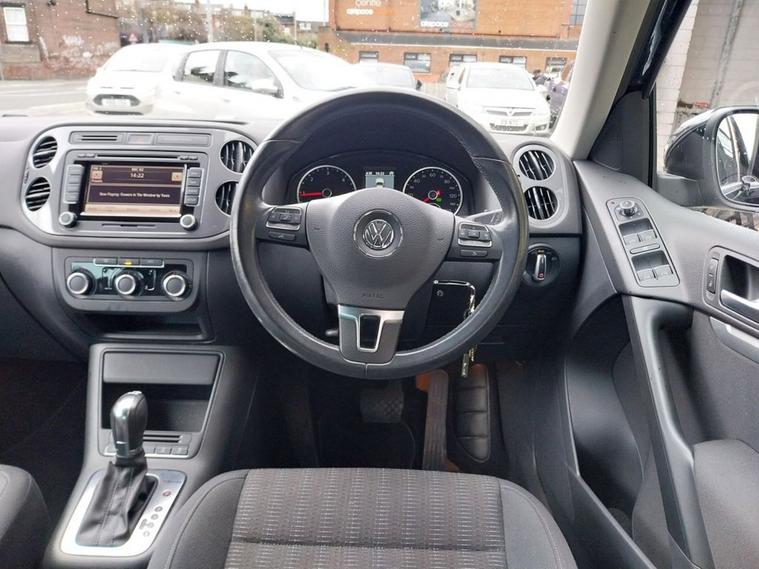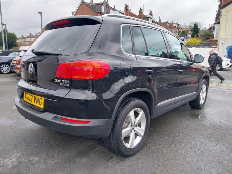 VW Tiguan 2.0 TDI 4x4 AUTO Tech Escape finished in Deep Black Paintwork with 17 alloy wheels. Sold with private plate or can be placed back to MW62 GKG. 1 OWNER FROM NEW, Full VW service history and 12 months MOT supplied. Excellent Spec includes upgrades of Cruise Control (£235), rear view camera (£400) and SAT NAV (£700). Standard Spec includes Multi-function steering wheel, Climate control, Trip Computer, Bluetooth connectivity, USB & AUX input, Remote central locking, ISOFIX, automatic headlights, rain sensing wipers, and much much more. Viewings welcome please call 01138032273 or visit dealer's website