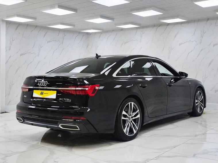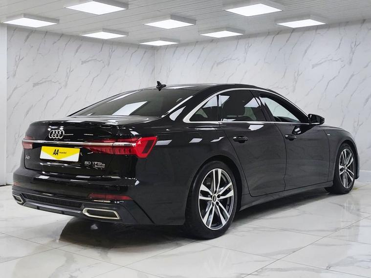 This 2022 Audi A6 Saloon TFSIe S line boasts a full service history and has had only one owner from new, offering excellent provenance. This sophisticated four wheel drive model features a 2.0 litre petrol plug-in hybrid engine, meeting Euro 6 emissions standards. It comes equipped with a 12 month MOT for your peace of mind. Notable features include Deluxe 4-Zone Automatic Climate Control, High Beam Assist, a 3 Pin 10amp Domestic Charging Cable, Towbar Preparation, and a Type 2 Socket for AC Charging, ensuring convenience and advanced functionality. The Audi A6 Saloon TFSIe S line stands out with its blend of performance and efficiency, thanks to its plug-in hybrid technology and four wheel drive system. The inclusion of a full service history and single owner status indicates a well maintained vehicle, setting it apart from others. The S line trim level further enhances its appeal with a sporty design and premium features, making this a compelling choice for those seeking a refined and capable executive saloon.