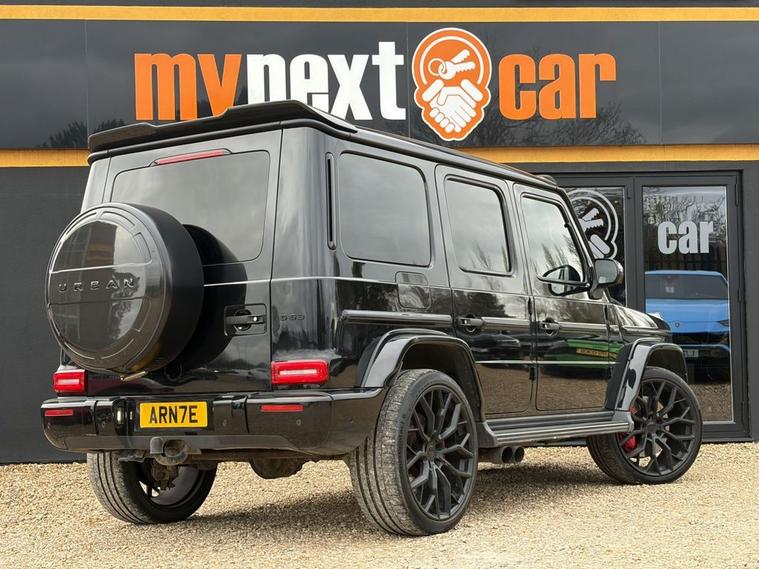 Mercedes G63 4MATIC URBAN -Carbon Fibre Light Pod -Carbon Fibre Rear Spoiler -Carbon Fibre Bull Nose Bonnet (Body Coloured) - Carbon Fibre Front Splitter with Fitted DRL (Body Coloured) -Rear Wheel Cover -URBAN UC-4 23 Wheels -Badges And Side Step Black Pack Adaptive Cruise Control, Air Suspension, Alarm, Alloy Wheels, Anti Lock Brakes, Auto On Headlights, Black Shadow - Fixed Side Steps, Bluetooth Preparation (Phone), Bodykit, Central Locking, Climate Control, DAB Radio, Daytime Running Lights, Carbon Fibre Bonnet Vents, Driver Airbag, Ebony Black Leather Interior, Ebony Black Roof Lining, Electric Seat Adjustment, Electronic Brake Assistance (EBA), Electronic Stability Programme (ESP), Extended Wheel Arch Kit, Exterior Black Styling Pack, Front & Rear Electric Windows, Front Parking Sensor, Heated Front Seats, Heated Front Windscreen, Heated Rear Seats, Heated Steering Wheel, Integrated Daytime Running Lights, ISOFIX, Keyless Central Locking, Leather Steering Wheel, Leather Upholstery, Metallic Paint, Power Assisted Steering (PAS), Power Fold & Heated DoorMirrors, Power Tailgate, Rear Parking Sensor, Rear Wheel Carrier in Carbon Fibre, Remote Boot Release, Remote Central Locking, Satellite Navigation, Towbar, Traction Control, Tyre Pressure Monitor, Urban 22 WX Alloy Wheels, Urban 23 UC Range Alloy Wheels Features: Leather seats, Satellite navigation, Adaptive cruise control, Alloy wheels, Heated seats, ISOFIX, Parking assist, Cruise control, Alarm/immobiliser, DAB radio, Bluetooth, Keyless entry/start system, Climate control